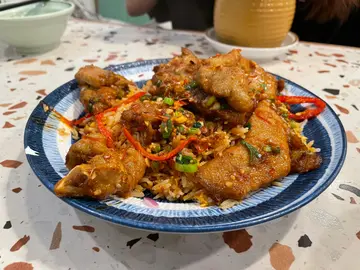 今日就同朋友去左 雪山冰廳餐廳環境舒適,除左經典小菜之外,仲有多款特色新菜式始祖椒鹽豬扒飯用左炒飯底,飯粒粒粒分明,豬扒煎到金黃酥脆,肉質鮮嫩多汁,帶有微辣椒鹽香氣,同炒飯鹹香完美結合路邊炒粿條配料豐富,除左新鮮彈牙蝦肉外,仲有臘腸,醬汁均勻地包裹著每一條粿條,河粉同麵條各一半,口感煙韌,味道濃郁而不膩,鑊氣十足大叻豬勁肉湯檬豬頸肉切得薄而入味,口感彈牙,湯底濃郁,仲有清甜蘿蔔搭配軟滑既檬粉同香料,味道幾正宗