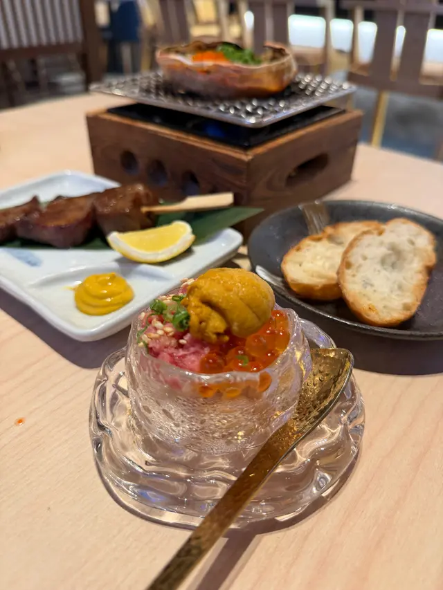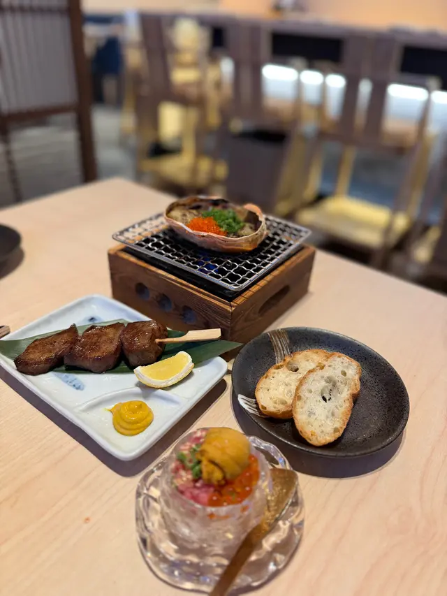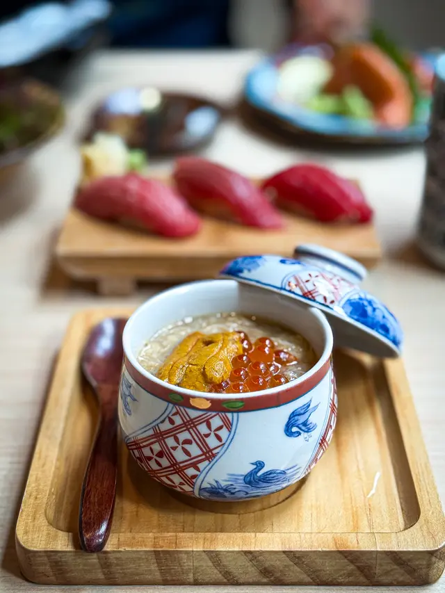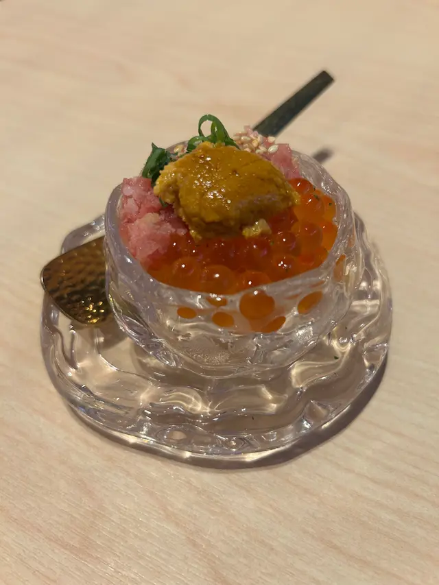 最近雪村由K11搬到銅鑼灣Tower 535新店限時推出人均三百多食海膽盛宴😍仲有超抵食嘅藍鰭吞拿魚壽司🍣優惠做到10月底 有興趣記得提早預約‼️✨ 海膽の盛宴 ($338/位)❀ 海膽薯仔沙律配溏心蛋 🥔將海膽配搭薯仔沙律加埋流心溏心蛋 啖啖鮮香☺️❀ 海膽蟹肉海鮮茶碗蒸 🥚蒸蛋夠晒香滑入面勁多海鮮配料有齊海膽、蟹肉、三文魚籽及蝦肉等鮮味十足🥰❀ 時令刺身 🐟牡丹蝦|三文魚|油甘魚每款都厚切新鮮👅❀ 海膽三文魚籽吞拿魚蓉 🐟賣相好吸睛😍 迷你杯飯鋪滿海膽、吞拿魚蓉及三文魚籽鮮甜又足料👍🏻❀ 海膽甲羅燒 🦀❀ 牛舌芯串燒 🐮甲羅燒配上脆多士 香濃惹味值得一試牛舌芯 厚切得嚟仲好軟腍😝❀ 日式牛肉壽喜燒 🐮❀ 海膽蟹湯手打稻庭烏冬 🍜壽喜燒鍋物內有好多牛肉 鹹甜入味烏冬蘸滿濃厚海膽蟹湯 非常暖胃✨❀ 青海苔白味噌湯 🥣❀ 甜品 🍨開心果雪糕❀ 白桃梳打 🍑❀ 巨峰提子梳打 🍇❀ 藍鰭吞拿魚壽司三貫 🐟 ($30) 限時優惠至10月31日‼️ 每人限叫一碟✨有齊赤身、中拖羅及大拖羅❤️肥美鮮嫩 油香好豐富👍🏻另外仲叫咗其他菜式~❀ 軟殼蟹手卷 🦀 ($38)❀ 本鮪碎蔥吞拿魚茸手卷 🐟 ($58)❀ 日本雞腿肉串燒 🍢 ($32)❀ 黑豚蘆筍串燒 🍢 ($35)❀ 黑豚車厘茄串燒 🍢 ($32)…查看更多