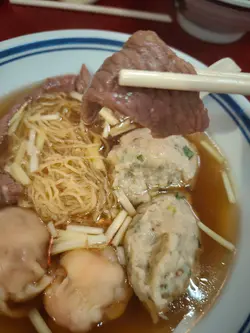 餐廳:雲吞仔 (尖沙咀)地址:尖沙咀赫德道1-3號利威商業大廈地下3號舖除咗茶餐廳之外,我平時比較多會去嘅就喺粉麵舖,皆因我鍾意佢哋大份夾抵食,可以慳住荷包之餘,又可以醫飽肚仔😋最近行過尖沙咀見到呢間10月10號先正式開張嘅雲吞仔,門口仲有唔少花牌🌺,原來老闆想繼承返老竇多年前嘅生意,延續以前喺觀塘吸引咗唔少捧場客嘅生招牌,希望憑住自己嘅創意同革新可以打出一片新天地✨餐廳環境以六七十年代嘅香港做背景🇭🇰,懷舊嘅設計,包括霓虹燈牌、紅膠櫈、木製圓枱、天花吊燈等,好有情懷特色🤩雲吞仔主打港式粉麵,有河粉、米粉同粗幼麵比你揀🍜,而主食就有三款高質素食材:招牌虎蝦雲吞、陳皮鯪魚球同新鮮騸牯牛肉,全部食材都喺餐廳每日新鮮自己整👍,湯底更加熬足10個鐘,務求精益求精,提供最高質嘅港式粉麵比每一位食客你可以揀單拼($38)、雙拼($46)或者三拼($54),識食就緊喺三樣都要啦😋,騸牯牛肉肉質鮮嫩,油脂唔多而且分布均勻,肉味濃郁帶有甘香;鯪魚球夠晒大嚿,夠彈牙而且一啲都唔腥,仲有陣陣陳皮同蔥香;呢度嘅雲吞一定要食,同出面餐廳唔同,佢哋所用嘅喺虎蝦🦐,咬開見到勁多蝦肉,相當足料飽滿😎。鍾意蝦香味嘅仲可以加蝦籽(+$8),鍾意食辣就可以試埋餐廳自家製嘅辣油🌶️,各有千秋另外叫咗碟都幾新鮮嘅菜芯🥬($20),飲品就嗌咗低糖豆漿($9)同無糖可口可樂($9),雖然雲吞仔唔多嘢食揀,但性價比都真喺幾高😌…查看更多