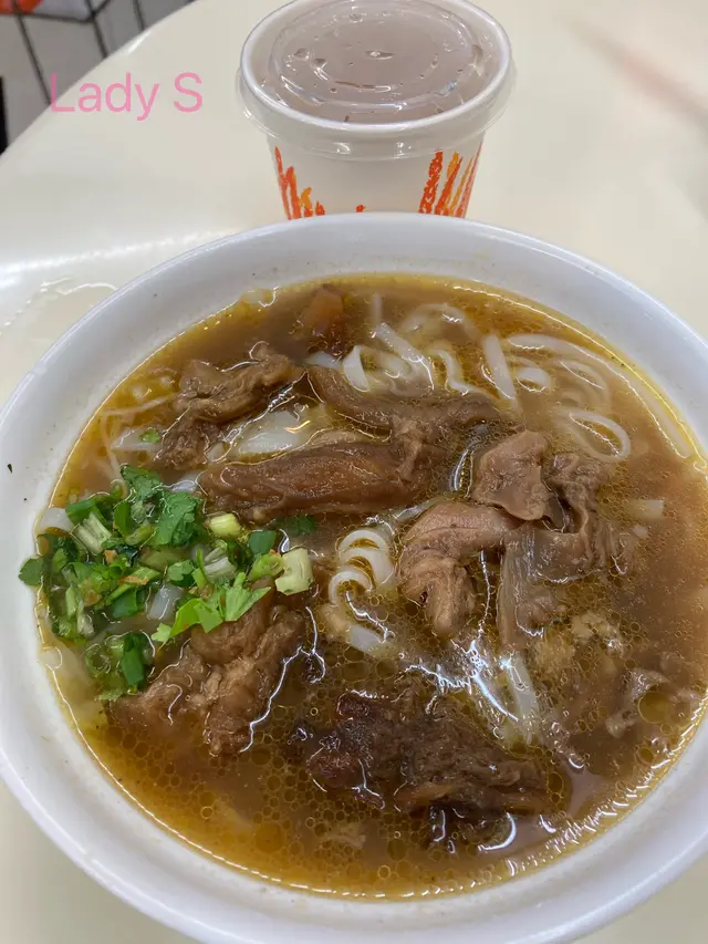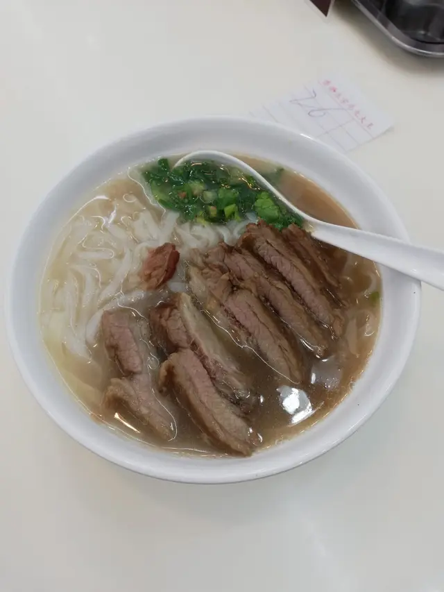 香滑牛筋河多汁~河粉份量偏少~河粉硬度適中~不過比想像中多牛筋~有蔥花、芫荽碎、蒜蓉粒~令個湯底更香~不過正常湯底偏淡~好彩叫多腩汁~好香五香味~炆得好淋好入味~一咬即爛唔會黐牙:)正宗嘅粉麵舖一向都存在衛生問題~枱油、碗油、匙羹油~食得都已經有心理準備~不過依間地板真係十分油+污糟~真係要小心慢慢行~比其他鋪惡劣~冇下次