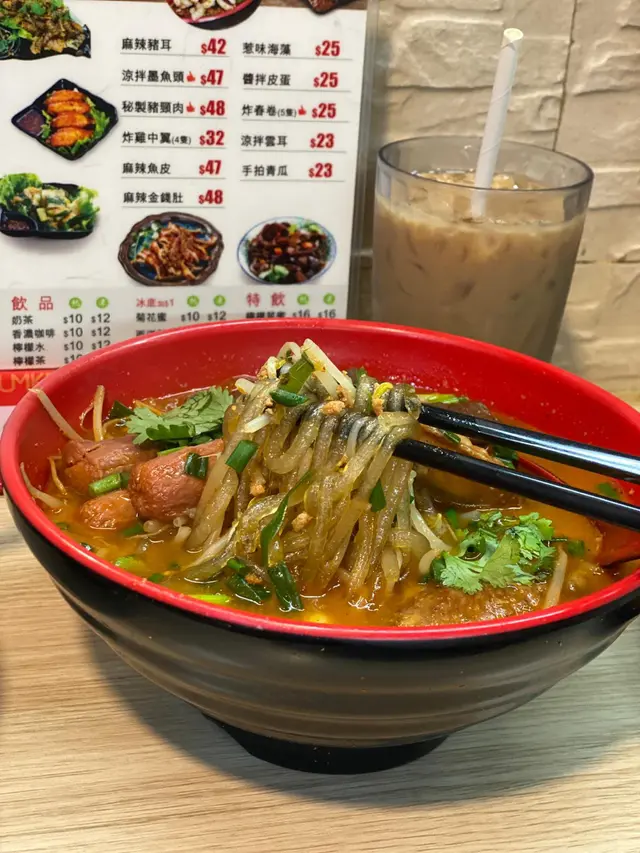 check out this iconic affordable mixian spot if ur in tsuen wan/ yuen long! famous for their sour-spicy & mala broths, but dw if u can’t handle the heat like me. their clear broth is comforting as well喺荃灣元朗嘅朋友可以試試呢間人氣米線店。佢哋嘅酸辣同麻辣湯底好出名,但唔食辣嘅我,極力推薦佢哋嘅清湯底🐔chicken seaweed mixian雞絲螺旋草米線loaded w shredded chicken & seaweed, v stuffed lol. i also added extra squid heads and fish paste spring rolls超足料,食完勁飽,仲額外加咗墨魚頭同魚肉春卷,好味!🐷pork chop mixian 豬扒小窩米線tender and well seasoned but slightly too fatty for me豬扒煎得夠入味夠嫩,不過比較肥🥓grilled pork neck 秘製豬頸肉sooo juicy. the thai style sauce is so addictive燒得微微焦香,juicy又惹味,必食!跟嘅泰式辣醬好上癮🍹chrysanthemum honey 菊花蜜🥤salted lemon sprite 鹹檸七…查看更多