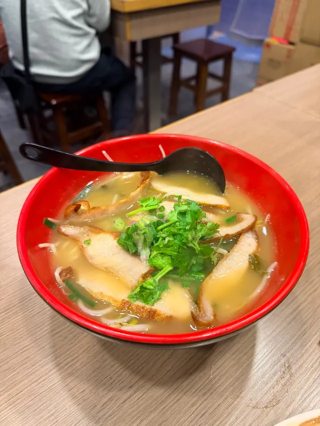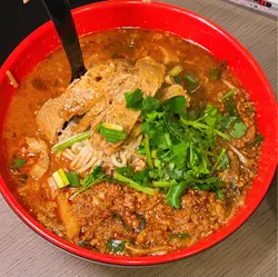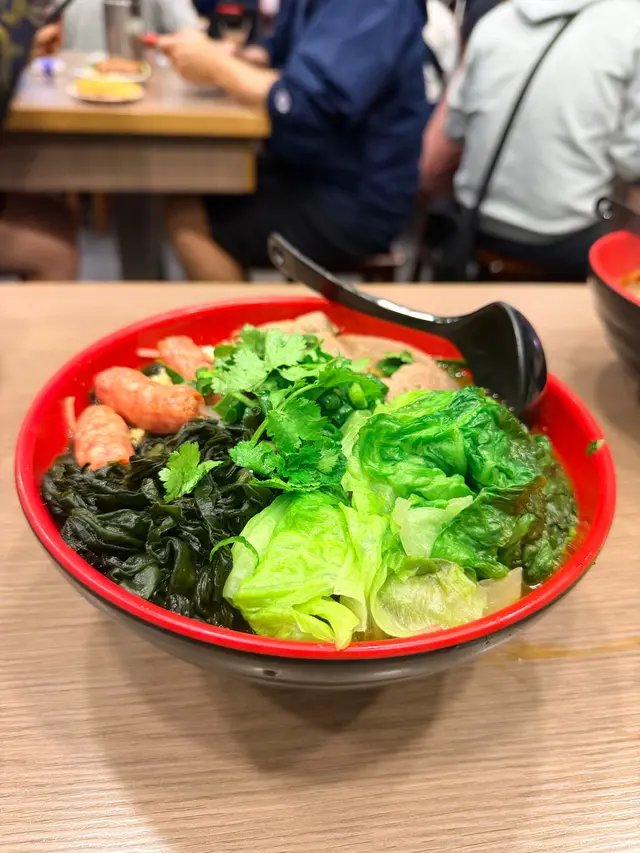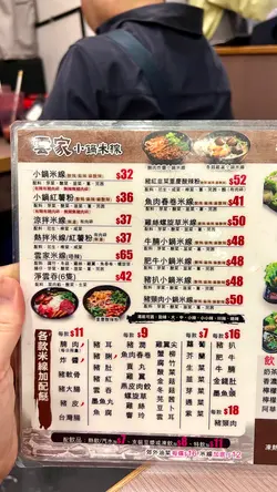 牛腩小鍋米線(小酸辣)配料:芽菜、酸菜、韮菜、蔥、芫茜追加配料:雲吞、台灣腸牛腩係另一款人氣之選,牛腩滷得入味又軟腍,帶少少牛香油潤感,配埋酸辣湯底又唔膩。加嘅雲吞皮薄餡多,台灣腸香氣濃郁、爽彈惹味,為整碗米線加分不少。