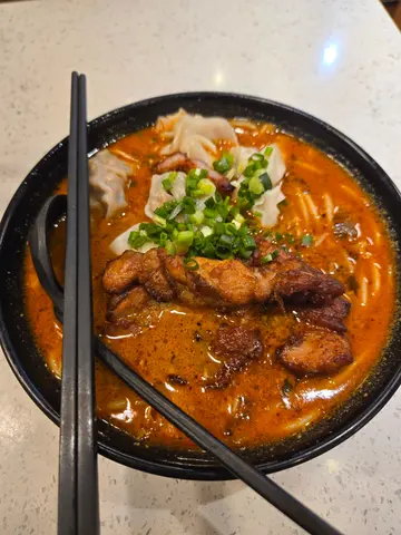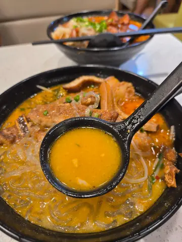 尋尋覓覓又搵到一間超好食嘅米線舖,夜晚超多人要等位,不過食客都算快來快去,不用等太耐。湯底都好多總選擇,有辣有唔辣,唔辣嘅有魚湯同蕃茄湯。不過我同老公都食得辣, 老公揀咗豬骨湯(微辣), 偷飲咗佢一啖湯覺得幾香濃。餸方面,佢就揀咗豬腩肉同埋豬扒。豬腩肉 好有驚喜,入口即溶嘅感覺,半肥半瘦,好淋。豬扒醃得入味,厚薄度剛好有咬口。紅薯粉煙煙靭靭,帶點彈牙。我叫左麻酸樂金湯, 又酸又麻又辣,味道層次夠了豐富。雲吞 皮薄餡靚,隻隻都飽滿肥美,最怕食粉頭,好彩呢度嘅雲吞唔係粉頭質素。煎雞扒 好香蒜味,而且唔鞋口,肉質夠亂夠滑。加咗碟小食 豬大腸,外脆內軟,乾身又帶點彈牙, 配泰式辣醬同辣椒粉食,味道更佳。整體嚟講最鍾意佢個湯底 有芽菜+韭菜+肉碎+酸菜,夠豐富,色香味俱全。…查看更多
