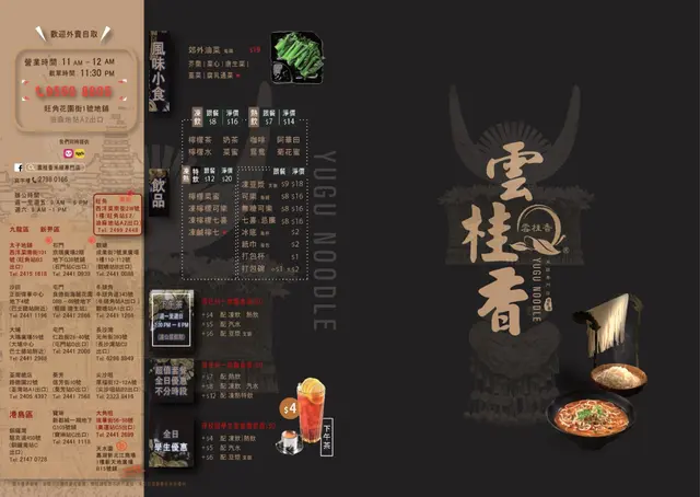 雲桂香米線專門店 (旺角) 網址: https://s.openrice.com/QrbS0GuSF00 地址: 香港旺角花園街1號鴻禧大廈地下5號舖 電話: +852 95508805