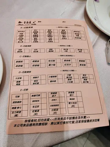 上網買咗片皮鴨任食放題,有小炒,海鮮,點心,燒味,飲品,上菜都幾快,雖然佢每一款二人份量,唔值錢嗰啲你畫多幾份佢都會照俾。但係好似片皮鴨同酸菜魚佢就計人頭,要兩碗酸菜魚,佢都係會比一碗 🥺而且仲要20分鐘先至出到一碗。感覺好似唔係好想俾你食咁,然後每次嘅酸菜魚都係越來越少魚,但係薯粉同芽菜就好多。 片皮鴨頭兩次都幾好食,不過之後再叫嘅片皮鴨就已經腍晒。炸生蠔就臭臭地可以唔使試,其他鮑魚,燉湯,小炒,大蝦,全部都熱辣辣都還可以。不過都係得酸菜魚會重叫😃最後埋單叫咗兩個侍應,等咗半個鐘仲未嚟到,最後要自己行出去埋單😓