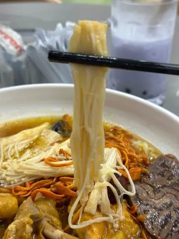 杞子蟲草花雞米線 $60+$8 金菇菜 $12 牛展上枱係大大碗嘅米線,見到有好多蟲草花同雞,雞嘅口感都幾嫩滑而且入口好軟口,個米線仲有啲娃娃菜,煮到口感幾爽脆,米線口感偏淋,再飲埋個湯底真係feel到真材實料,因為個湯底好鮮甜,雖然望落去好似好油咁實際上入口唔油膩。加咗$12有3塊牛展,勁入味👍👍。🧋香芋珍珠套餐凍飲加$10,濃郁嘅香芋味,就係珍珠有點硬。下次再嚟試埋酸辣米線同其他麻辣小食🥢先。