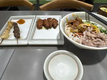 環境: 枱唔多 但睇落好整潔 都好光猛 服務: 幾好 落左米線 仲會備隻碗仔比你食物:依間米線店真係超正!必點涼拌肥牛大腸米線,酸酸辣辣既湯底超開胃,肥牛嫩、大腸Q,米線吸哂湯汁一啖一啖食到停唔到落來。燒雞翼外皮烤得脆脆的,咬下去肉汁直接爆出來,啲汁香到超犯規!跟住個牛肉串醃得超入味,墨魚頭串爽脆彈牙,炭火香出哂黎。可惜一個人食唔到太多,唔係一定叫多幾串,試埋其他串燒!每啖食都超滿足,絕對是唔輸出面啲燒墨魚頭,一定要黎多幾次!!