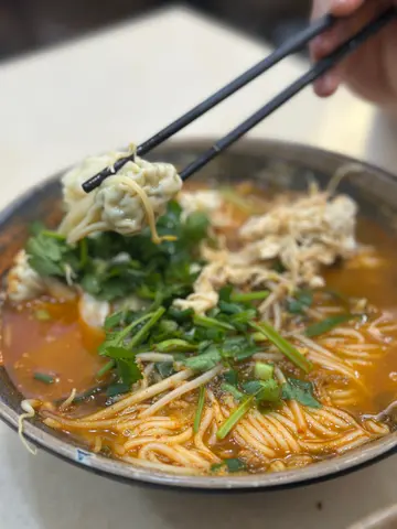。雲香園米線,揀咗酸辣湯底,哩碗米線配料勁豐富,有雞翼,冬菇,雞絲,魚春捲等。湯底絕對係靈魂,每日落足料煲制,仲要熬煮6個鐘。湯底酸辣度啱啱好,飲落幾開胃。幾款配料各有特色,雞翼鹵得幾淋,冬菇同雞絲軟嫩,酸菜爽口,蔬菜新鮮鮮甜,米線索咗湯之後更好食:)。熱拌米線,配料加咗墨魚丸同肥牛。熱拌米線同湯米線又係唔同風味,撈汁酸辣惹味,再落入香菜榨菜肉碎等配料,米線爽口醬香濃郁。肥牛份量都幾多下,入口牛味十足,墨魚丸彈牙爽口,全碗食曬真係好飽