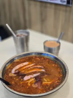 。美利奶茶王,睇牆上介紹,老闆親自去學沖奶茶,每杯奶茶都特選幾種茶葉沖制而成,比得過茶餐廳奶茶質素。呢杯奶茶確實唔錯,茶味幾濃郁,飲落順滑冇澀口。奶同茶嘅比例啱啱好,唔會太甜:)。凍檸檬茶,套餐加配,檸檬落得夠多,飲落有果香同微酸,同紅茶底幾夾。食辣嘢,真係要飲番杯清爽凍檸茶才得