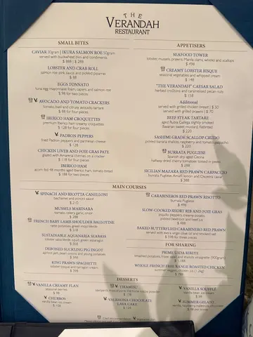 淺水灣露台餐廳絕對係慶祝約會首選!環境復古浪漫又高雅~喜歡影相打卡可以去埋餐廳內園中庭位置,旋轉樓梯高掛復古花型吊燈,氣派盡現~最近The Verandah有新西班牙主廚坐鎮,推出全新tasting menu $598 起~TASTING PLATTER🔸迷你龍蝦包麵包size 剛好龍蝦啖啖肉食到龍蝦鮮甜味🔸 吞拿魚沙律蛋泡沫佐三文魚子個foam勁香tuna味有三文魚子好鮮🔸 番茄、羅勒與酪梨塔塔(素)口感好fresh 🔸 伊比利火腿可樂餅/ 西班牙青椒配刨絲帕瑪森起司(素)可樂餅脆皮creamy 加埋火腿有d咸香,旁邊有小青椒唔辣,刨上芝士碎又幾好味MAIN COURSES🔸 去骨乳豬磚 (配杏桃果醬、洋蔥+小馬鈴薯)切開脆皮乳豬磚,一絲絲豬肉絲化開非常軟嫩🔸西班牙紅蝦燉飯 +$ 198每一啖燉飯都食到滿滿紅蝦鮮味,米粒質感剛好有咬口,加埋布拉塔芝士同魚子增添creamy鮮味Dessertbaked Alaska 火焰雪山 +$60服務員即席燃點火焰烈酒,驚喜係酒令到整個甜品好香,雪糕同蛋白霜完美結合,可以話係我食過最好味火焰雪山TIRAMISU提拉米蘇 +$40Tiramisu超大杯, mascarpone芝士非常軟滑,咖啡味香濃又帶點酒味飲品就選擇左Hot latte 同hot mocha,正常發揮!…查看更多