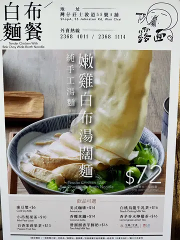 牛骨好多舊,每舊都有肉可以食肉煲到好淋好易分離西施燉蛋蛋味都幾香嫩雞白布湯闊麵食落好似沙鍋雲吞雞咁啱另一個餐有餃子就放埋入湯XD好少見嘅闊麵,今次為咗佢而嚟好有咬口,掛湯相對無幼麵咁好感覺好得意有好多菜同雞肉,健康之選雞絲粉皮賣相XD攪勻之後無任何問題麻醬好香,而且仲好濃郁雞絲、青瓜、粉皮嘅份量都好多,兩個人分食就啱啱好粉皮厚切所以超有咬口青瓜切到好幻細好爽口飲品跟餐加$16轉特飲香茅香水檸檬荼同$6豆漿香茅香水檸檬荼好清新,香茅味小小點綴唔會太重味食完湯麵再飲佢幾清新嘅感覺===露面手工拌麵料理@biangbiang.noodle灣仔莊士敦道55-61號修頓大廈地下A號舖…查看更多