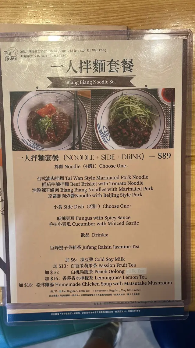 露面手工拌麵料理 (灣仔) 網址: https://s.openrice.com/QrbS0rtGA00 地址: 香港灣仔莊士敦道55號地下A號舖 電話: +852 23684011