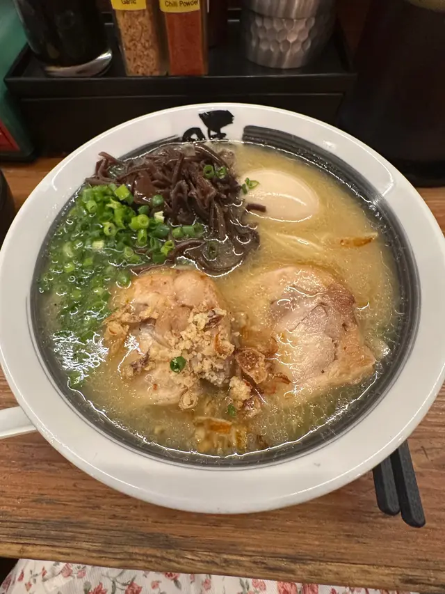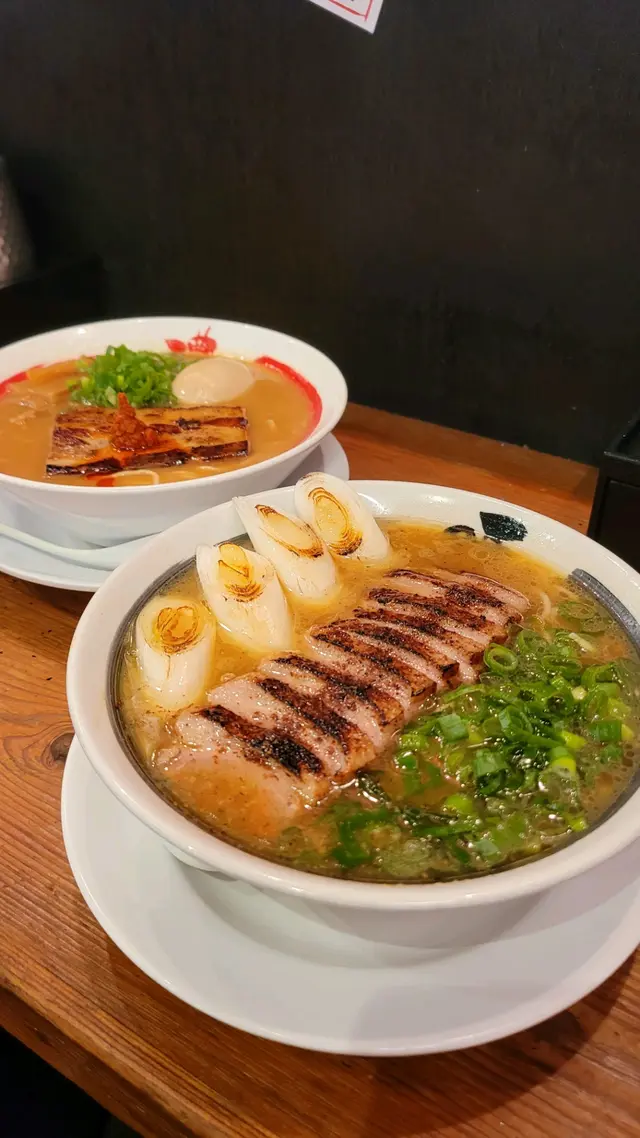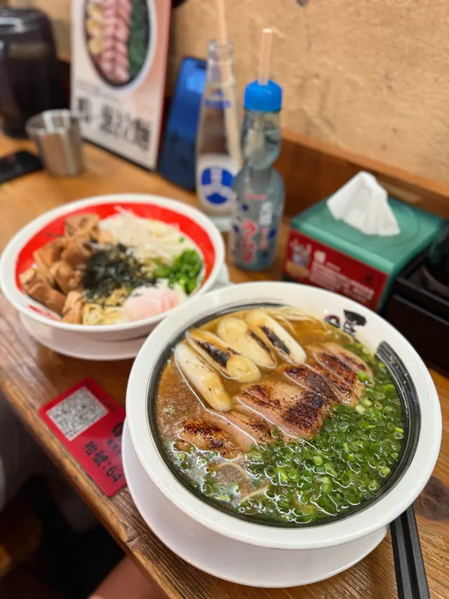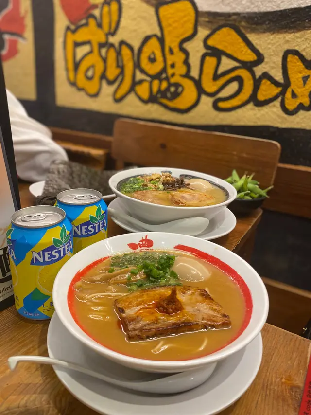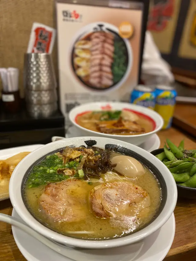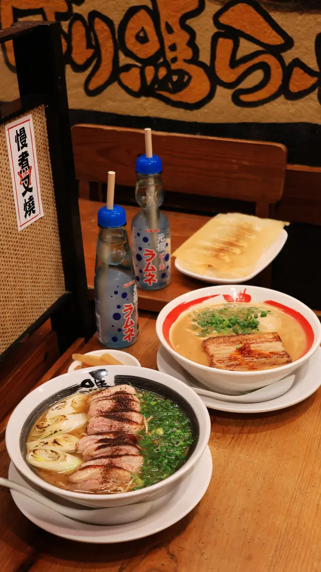 🇭🇰 Central 中環|Bari-Uma Ramen 霸嗎拉麵[𝙇𝙞𝙢𝙞𝙩𝙚𝙙-𝙏𝙞𝙢𝙚 𝙊𝙉𝙇𝙔] 𝐃𝐮𝐜𝐤 𝐒𝐡𝐨𝐲𝐮 𝐑𝐚𝐦𝐞𝐧 𝐰𝐢𝐭𝐡 𝐃𝐮𝐜𝐤 𝐁𝐫𝐞𝐚𝐬𝐭, 𝐒𝐜𝐚𝐥𝐥𝐢𝐨𝐧 𝐚𝐧𝐝 𝐆𝐫𝐢𝐥𝐥𝐞𝐝 𝐋𝐞𝐞𝐤 Tender duck breast topped with sour plum powder, grilled scallions, and leeks; paired with firm noodles and a lighter, less oily broth. 😋So comforting, yet totally crave-worthy.The sour plum powder on the duck really hit the spot, elevating our appetites that keeps you going back for more 🫶🍜𝐓𝐨𝐧𝐤𝐨𝐭𝐬𝐮 𝐑𝐚𝐦𝐞𝐧 𝐰𝐢𝐭𝐡 𝐂𝐡𝐚𝐬𝐡𝐮 & 𝐄𝐠𝐠 Rich, flavour-packed tomkotsu broth paired with a thick slice 👀of chashu that had the perfect fat-to-lean ratio. So satisfying in every bite 🐷 Adding some seven-flavoured powder🙂↕️ elevated the flavours, making them so layered. 𝐏𝐚𝐧-𝐟𝐫𝐢𝐞𝐝 𝐆𝐲𝐨𝐳𝐚 These gyozas 🥟were a little different, with the soft side down and the crispy, pan-fried side up! 🥴Dip them in gyoza sauce for that perfect bite. Comfort food with a little crunch 👌[𝐃𝐫𝐢𝐧𝐤] 𝐆𝐚𝐧𝐬𝐨 𝐑𝐚𝐦𝐮𝐧𝐞Sipped on this while slurping ramen, such a throwback to childhood! Fizzy, fun, and nostalgic.✨Every bite hit the spot. If you're in Central, this one's worth the slurp! 🙌📍22號 D'Aguilar St, Central💲Price per person: $144 HKD…查看更多