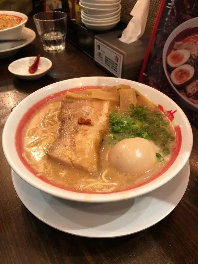 一向都有聞說這間拉麵店,碰巧銅鑼灣分店新開張,有限時優惠無限追加溫泉蛋及麵餅,所以一行三人去試一試。下午2點左右,已經有20多人排隊,排了半個小時左右便入座,效率不錯。到落單時,問店員如果追加溫泉蛋是否同時在落單紙上剔選,店員二話不說取去我們手上的落單紙,並說會替我們追加。怎知,到拉麵到時竟然沒有任何溫泉蛋