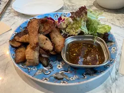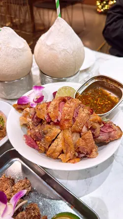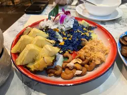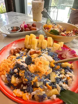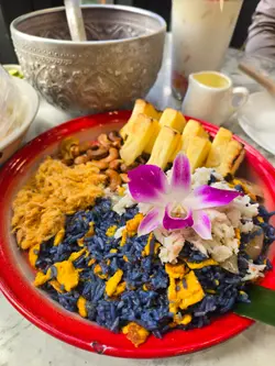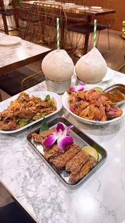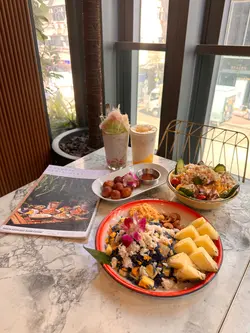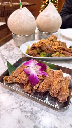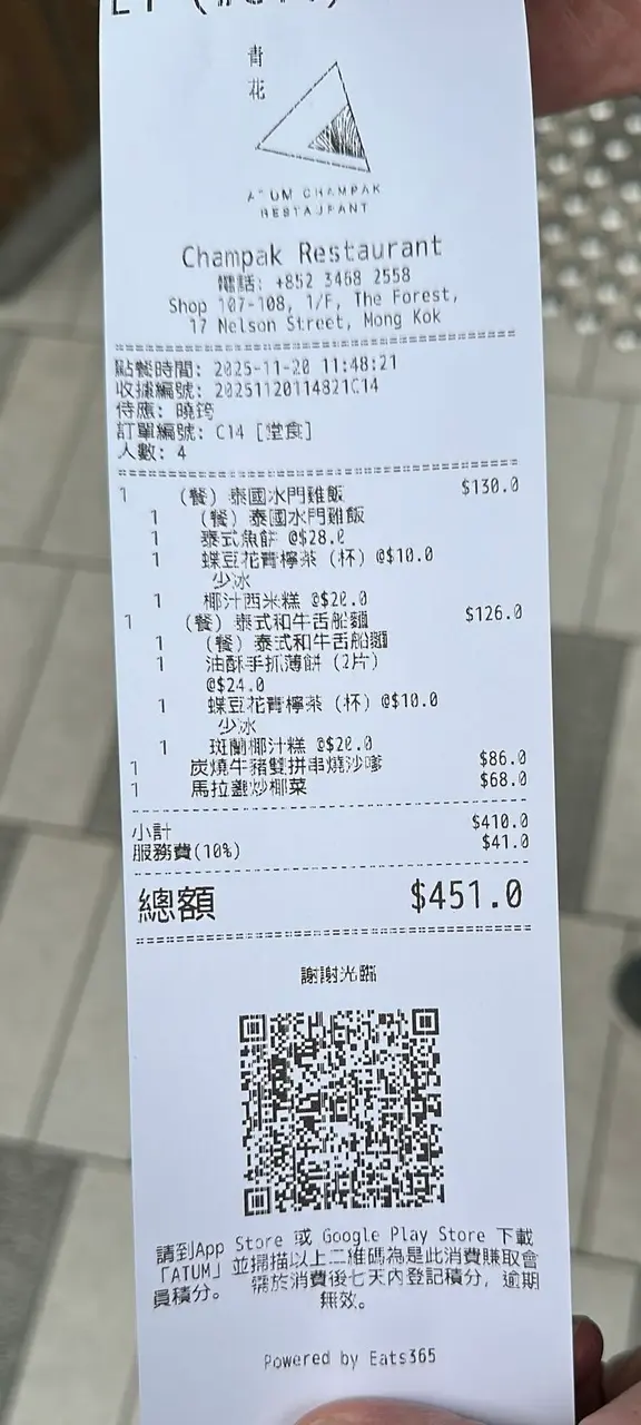 仲要等多幾個月先可以飛泰國,耐不耐就好掛住泰國啲美食😌啱啱去完旅行返黎懶得煮飯,趁住今日放假就去旺角食我成日都去食嘅泰菜「青花」😉餐廳環境就好似置身於forest入面,仲有多款特色嘅餸菜例如用蝶豆花炒飯係出面比較少見架👍🏻建議大家黎食記得要預早book位,因為成日都爆場架👍🏻雞皮卷呢款係我每次必點嘅小食,炸到脆卜卜又薄身嘅雞皮入面包住雞肉,咬落去嘅時候會一啖爆汁好juicy😋雞肉鮮嫩多汁配上泰式辣醬酸酸辣辣,勁惹味又香口,絕對令你食唔停口炭燒豬肉串燒沙嗲一碟分量有6串,平均只係12蚊串幾抵食👍🏻入口有陣陣嘅炭燒香氣,豬肉肉質軟腍,外面焦香內裡多汁,加上香味濃郁嘅沙嗲醬簡直係絕配😋馬莎文香料牛肉咖喱份量驚人😆係一大碗嘅咖喱,足足可以四至五人分享👍🏻牛肉用上肥牛片,肉質較為軟腍,加入大量蔬菜:蓮藕、茄子、秋葵、腰果、薯仔令咖喱帶有蔬菜嘅清甜味,咖喱香而不辣,所以一定要嗌蒜蓉包去點咖喱汁,一滴都唔好浪費😆蒜蓉包香脆鬆軟,上面搽滿香味濃郁嘅蒜蓉醬,配上咖喱汁真係Perfect👍🏻藍蝶花蟹肉菠蘿炒飯菠蘿炒飯就食得多😆用藍蝶花去浸泡米飯,令米飯變成紫藍色,再鋪上大量蟹肉、提子乾、雞蛋同菠蘿粒,可以自行再加入肉鬆同腰果令口感更加豐富👍🏻蟹肉嘅鮮味、加上提子乾嘅微甜啱啱好中和返菠蘿嘅酸味、肉鬆鹹鮮嘅味道配搭埋腰果香脆嘅口感,味道層次更加提升😋📍青花 (旺角)旺角奶路臣街17號THE FOREST 1樓107-108號舖人均消費:$200-300食物:⭐️⭐️⭐️⭐️⭐️環境:⭐️⭐️⭐️⭐️⭐️服務:⭐️⭐️⭐️⭐️⭐️回頭率:⭐️⭐️⭐️⭐️⭐️…查看更多