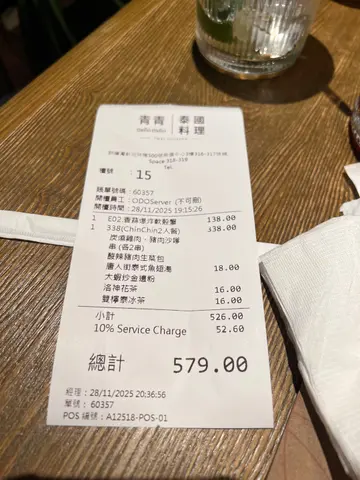(收據喺最後)昨天和好姊妹及她女兒相約在「青青泰國料理」用餐,本應是場溫馨的聚會卻成了一場鹹度超標、節奏緩慢味蕾考驗。我們點了軟殼蟹、沙嗲串、生菜包、魚翅湯、金邊粉和兩杯茶飲。菜單睇落豐富吸引,但實際體驗卻令人失望。首先每一道菜都像在海水裡浸泡過般死鹹——香蒜爆炸軟殼蟹鹹味完全蓋過鮮味,大蝦炒金邊粉的醬油下手過重,連平時最開胃的酸辣豬肉生菜包都鹹得讓人不停喝水。成餐飯直頭要我地幾乎是靠洛神花茶&泰冰茶在「漱口」.更讓人焦躁係上菜速度。每道菜間隔長達45分鐘以上空等著看隔壁桌後來人都吃飽離開,我地仲係咁等軟殼蟹,直頭等到全部食哂都未嚟。叫cut 又唔俾都飽哂”超無奈”,這種斷斷續續的用餐節奏影響聊天興致都打斷,好姊妹女兒更是等到無聊到玩完電話自己發呆。整體嚟講依間餐廳調味失衡與服務節奏,讓我與姊妹一致認同:食過一次就唔會再去。每人仲差唔多300仲成口鹹膩與無奈,實在可惜。…Read More