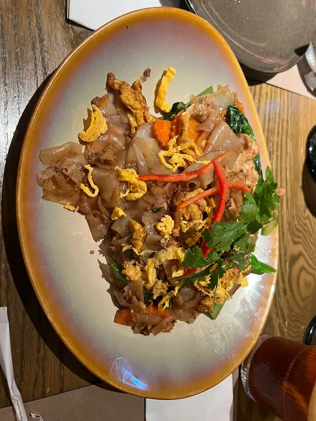 銅鑼灣最近很多泰式餐廳,小妹超愛吃泰菜。朋友說想試這間,就來吧平日午飯時間,不用等位店很大!門口出面都有位置,沙發位的設計挺別致,整個餐廳的裝修都很有風味很漂亮真的蠻大的,難怪不用等位午市套餐價錢在銅鑼灣尚算合理~小妹點了海鮮冬陰功金邊粉,配蜜瓜烏龍茶$82+10%如何說呢~冬陰功的酸味足,且是微辣,但感覺跟平時飲開的不太一樣好似是魚湯底吧,其實蠻不錯的。只是這家的金邊粉有點厚身,似在內地吃到的厚身河粉,口感較粉狀,像煮不熟似的,有點影響他掛湯的功能雖然說是海鮮冬陰功,但整碗只有一隻蝦,魷魚反而給了不少,只是偏硬,需要時間咀嚼~青口則有兩隻!朋友點了豬頸肉扎肉炸蛋飯配泰式奶茶$86+10%這個價錢來說,豬頸肉的份量好像有點少不過朋友說豬頸肉好吃下次小妹也可以嘗試這款不過不失~下次可以嘗試其他菜式查看更多