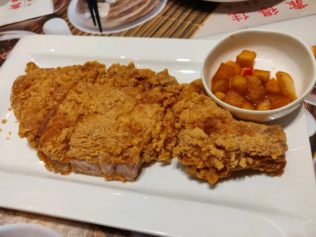 今次又係同同事嚟食 呢間都唔需要等太耐時間, 原本係求其揀一間黎食,點知一入嚟坐低先知原來係咪芝蓮推介嘅餐廳。我叫咗個鹽酥排骨菜飯, 份量好夠足,仲要外脆內軟,排骨入面仲好juicy. 叫咗杯熱豆漿,都唔錯,唔會太甜。 佢隔離仲有啲類似泡菜嘅冷盤都幾開胃。 查看更多