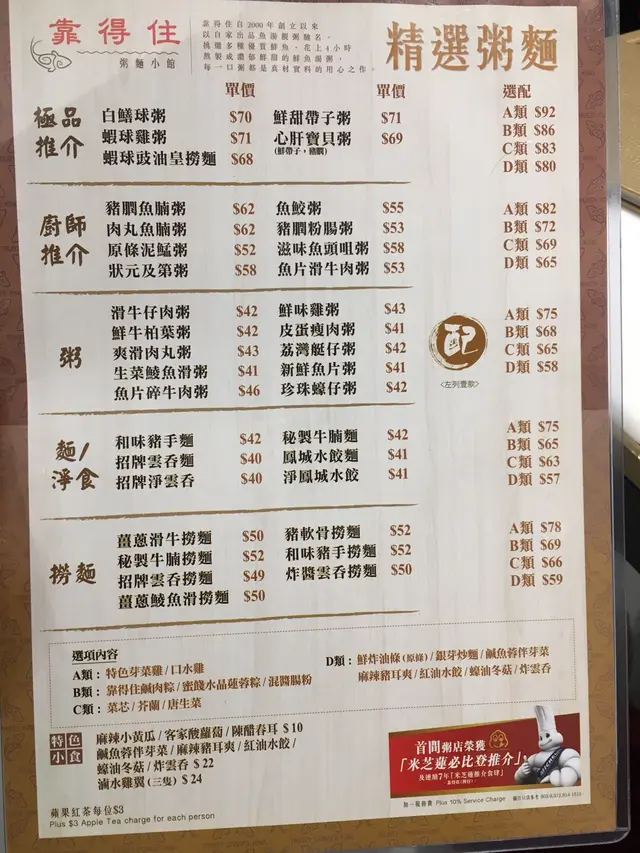 年初五晚上,本打算和家人食pizza 意粉,但我得了傷風,吃了傷風藥,便沒有胃口。於是家人提議去離屋企不遠的「靠得住」食米芝蓮推介的粥品。由於家人沒有吃過這間食肆,所以對他們來說是沒有抱有期望,但我幾年前試過「靠得住」另一間分店,便一試難忘,還記得那碗粥非常綿。今次到香港仔分店沒有令我失望,點了肉丸粥配銀芽炒麵,牛腩撈麵配混醬腸粉,可惜混醬腸粉賣完了,改點了油炸鬼。肉丸粥:粥很綿,肉丸味道濃,易咬開,還感覺到肉汁牛腩撈麵:家人說牛腩很軟,牛肉味濃郁,他很喜歡油炸鬼:很脆,放進粥內吃,讚!還有一提,店內提供蘋果茶,都幾清新查看更多