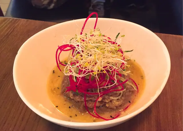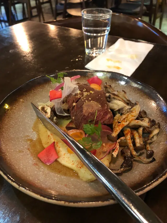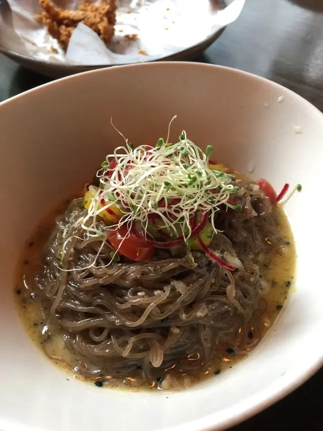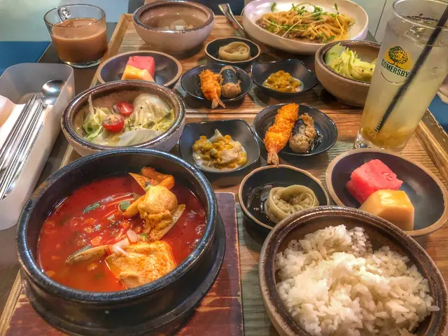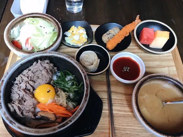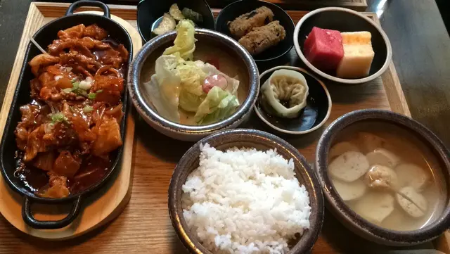 自從係尖沙咀返工就發現厚福街有好多好野食,令我最鐘意嘅就係依間新派韓國餐廳。環境夠靜,多位,亦唔會太多人,午飯時間餐牌平好多,相反夜晚就貴好多。餐牌有好多唔同選擇,我最鐘意就係烤五花腩蓋飯,其實佢有沙律,有餃子,有芽菜,仲有湯,飲品,仲有水果。88蚊真係飽到飛起。唔好以為個飯望落好乾,但d五花腩好入味,加左d燒汁洋蔥,真係食完一啖就想食第啖。d湯望落好清,但其實好鮮甜。所以真係好值得推介呢!其實中午時間有時想食好d,依個就係一個好選擇la。