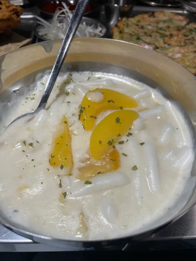 韓式辣伴醬雞肉鍋食韓國嘢點少得食韓國麵, 湯底唔係話好辣喎,配料還有紅蘿蔔,大蔥等等,好濃郁。雞肉同麵的份量也不少呀!芒果梳打,荔枝梳打,酸酸甜甜,解渴之選