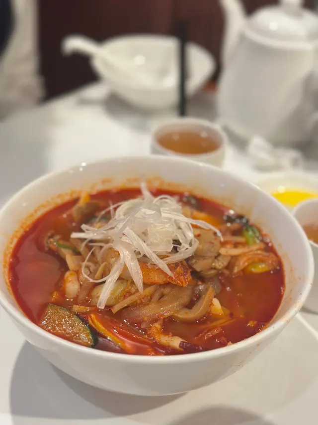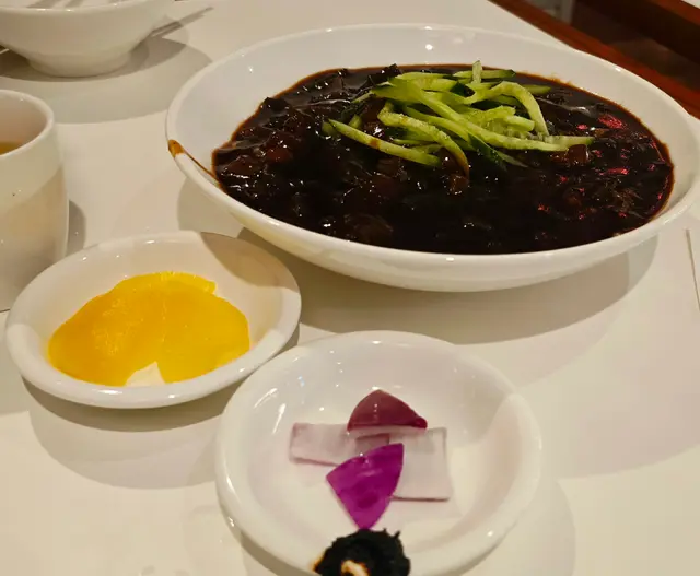 First of all, their noodle base was decent. But the black bean sauce was bland, spicy seafood soup was nothing special. There was a funny taste to the sweet and sour pork sauce. Nothing like anything from Korea. If the food stays the same, then would not visit again for a second chance. Everyone else who was wearing white was offered an apron upon ordering. But once again, I was not. The staff were polite. But I guess since it’s only their soft opening, there is much to improve. …查看更多