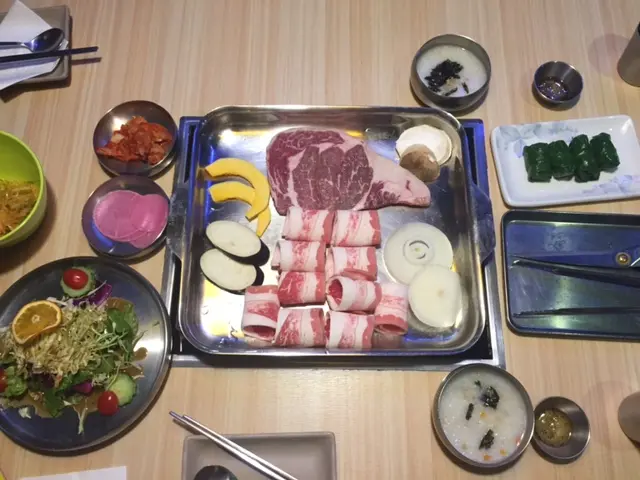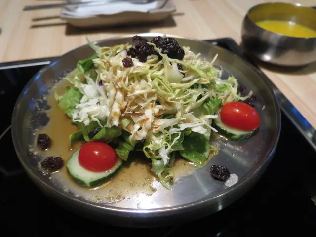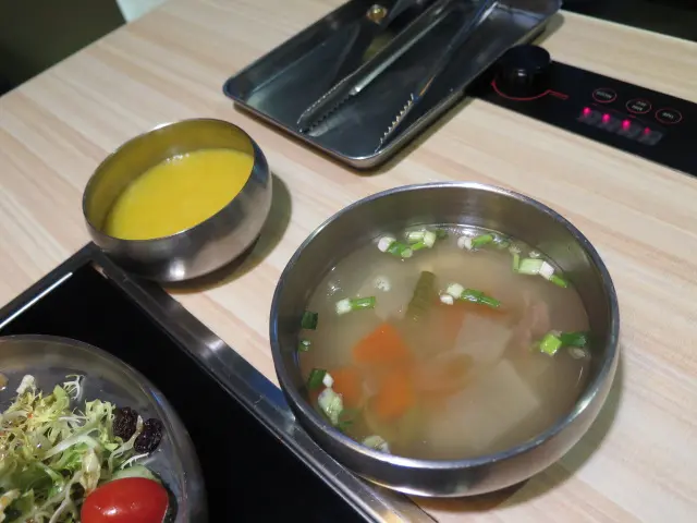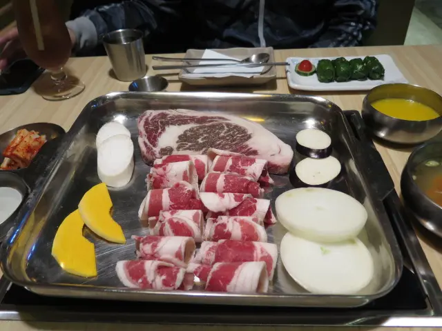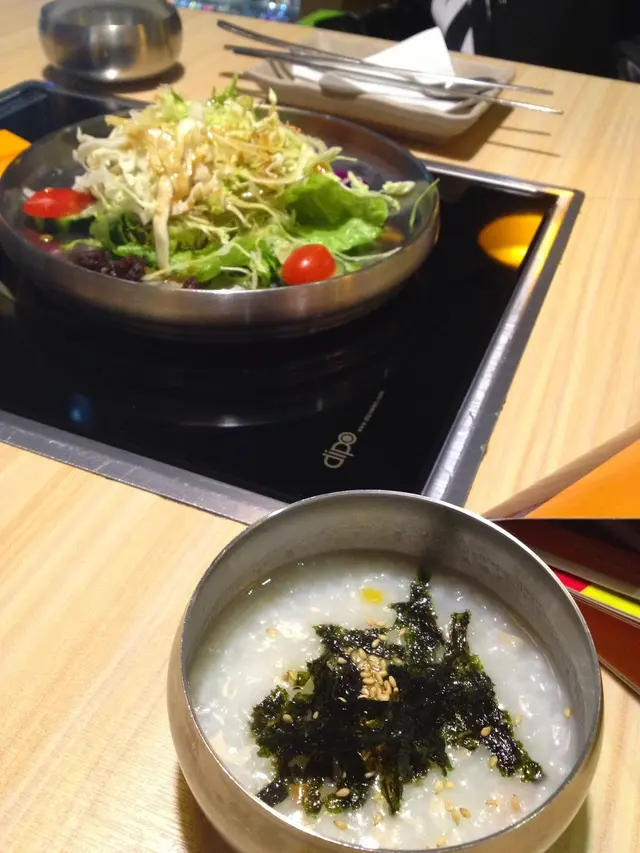 剛巧見倒它在openrice做pormotion,原價$718「烤熟成生西冷牛排套餐」現在半價,所以即時就訂枱試下。環境方面,裝修都ok,樣樣好新淨同座位都好寬闊。首先睇下餐牌先,差不多全部都係set,散叫比較少選擇。講番個餐,我見倒其他人寫可以選擇粥或湯,不過店員無問我地就直接俾左粥先來有沙律、粥、酸蘿蔔、蔥、泡菜,略嫌粥太淡。次後再來主菜,有西冷牛排、牛五花腩、洋蔥、南瓜、茄子,成個大鐵盆放在熱爐上我才知道係就咁燒。侍應好細心會幫你燒埋,不過佢地燒得太快,根本食唔切,反面令食物變涼。而西冷牛排完全沒有驚喜,只是將普通一塊未經醃製的牛排燒熟,所以只能說很有牛味,反倒是加埋酸蘿蔔一起吃會幾醒胃,而且可以減去油膩。另外還有蔬菜包飯,平時日本飯糰都好好味,心想蔬菜包飯這個配搭幾特別,應該會幾好味又健康,點知完全無味道,同個粥無分別,完全不值一提。Overall,「烤熟成生西冷牛排套餐」只可說很普通,好似就咁將生肉燒熟,味道沒特別,如果是原價$718絕對不值得。另外,建議日後放些心思在粥同蔬菜包飯上,味道淡而無味,唯一可以一讚只有酸蘿蔔。查看更多