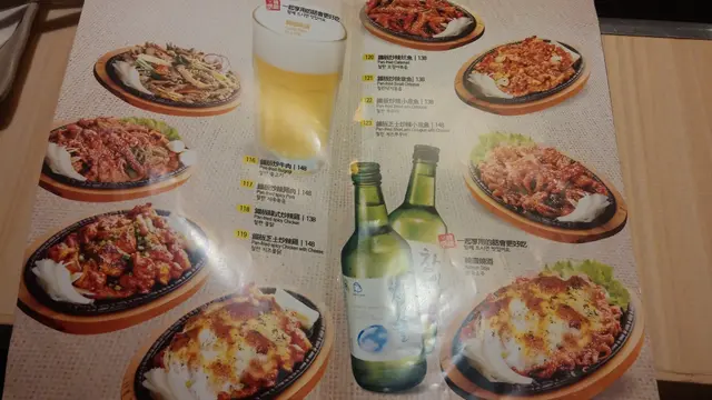 今天因為工作需要,沒有留在家中做煮飯佬而出了尖沙咀老婆下班後說既然這樣就去吃韓食,本來打算去韓國街,但路過看見這間未試過,所以嘗試一下一進餐廳人不太多,只有半滿,很快被安排入座坐下看看menu,有很多喜歡吃的菜式,真的不知從何入手但無奈我們只有兩人,所以也吃不了太多,最後叫了烤爐烤芝士脊排和韓式豬手點餐後店員立即送上前菜,份量比其他餐廳頗多前菜有:蘿蔔燉牛腩 - 味道不錯,但有點韌泡菜 - 普通醃蘿蔔 - 正常韓式卷蛋 - 冷冷的不特止,還很乾也沒甚麼味道芝士脊排原來是餐來的,menu上沒列明,是店員告知可以點兩杯飲品drink menu上的飲品外連酒類也可以,最後我們選了芒果smoothie及藍莓smoothiesmoothie上枱時只見杯是半滿,有點失望嘗過味道後反而慶幸是半滿,因為飲品味偏淡還有味道是很artificial等了一會先上的是豬手豬手大大碟的,份量很多,口感也不錯豬皮是煙煙韌韌的,很有骨膠原的感覺,肉也不會乾可惜的是味道也是偏淡豬手附上醬汁,但跟豬手一點都不夾,只有鹹味太餓的關係,當我們把豬手吃掉一半之際,突然間店員放下一碗蒸蛋詢問後原來也是跟餐的,所以我們也不客氣地品嚐蒸蛋熱熱的,味道不錯,可惜是有點老因為老婆不太吃這種蒸蛋,所以幾乎是獨自KO了它再等了一會,芝士脊排到了一上枱,嘩~~很大份,脊排每件都很有份量店員先幫我們烤熱芝士然後把脊排每件沾上芝士我們急不及待的把脊排放入口中嘗了一口後我倆都非常失望首先芝士是沒甚麼芝士味 (沒錯,就是電視裡芝士很有芝士味的味道沒有了)脊排的肉是乾乾硬硬的,味道幾乎可以說是沒味道茄子及洋蔥沾滿醬汁很有味,但茄子是半生的本來想用烤爐的熱力煮熟茄子,無奈的是同時間也會把芝士燒焦因為實在太不好吃,老婆勉強的吃了兩條就放棄了,結果還是我要把它們KO最後我用了兩杯smoothie加大量的水才把這乾乾的脊排給KO掉 (明顯老婆其實是很不喜歡那杯smoothie才讓給我)說真的,所有的食物都是偏淡的,只有前菜及蒸蛋是有味的其實我倆平時食得很清淡,煮飯不下鹽也覺得很夠味,真的不知為何這裡煮出來的食物都是淡而無味最後埋單成為八百多,真的覺得一點都不值,寧願上樓上的其他餐廳吃查看更多