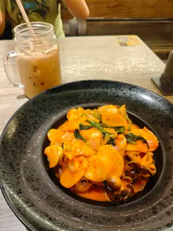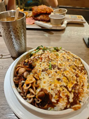 今日又黎搵新野食,搵到喱間有比較多分店嘅餐廳 - 韓樂一入去環境環境昏暗,比較有格調。我們每人一個餐,分别叫了......1. 韓風豐盛雜扒餐蒜蓉汁配熱朱古力,豬扒外脆內嫩,薯條金黃鬆脆。2.半容鮮茄肉醬扁意粉配凍朱古力,扁意粉Q彈有咬勁,茄肉醬酸甜鮮香不油膩。3. 芝麻八爪魚芝士燴飯配熱柚子新鮮冷壓檸檬茶章魚彈牙鮮嫩不柴,芝士融化濃郁4.辣八爪魚炒野菜年糕配凍特濃即磨咖啡年糕軟糯吸汁,彈牙不黏,章魚腳Q彈鮮嫩,野菜清脆,咖啡冰涼順滑因為每份餐都比較大份,下次4人可點三個餐就足够了,今次食到好滿足😋😋😋!Yummy 😋…查看更多
