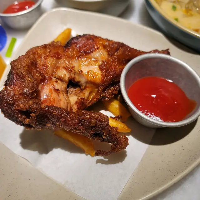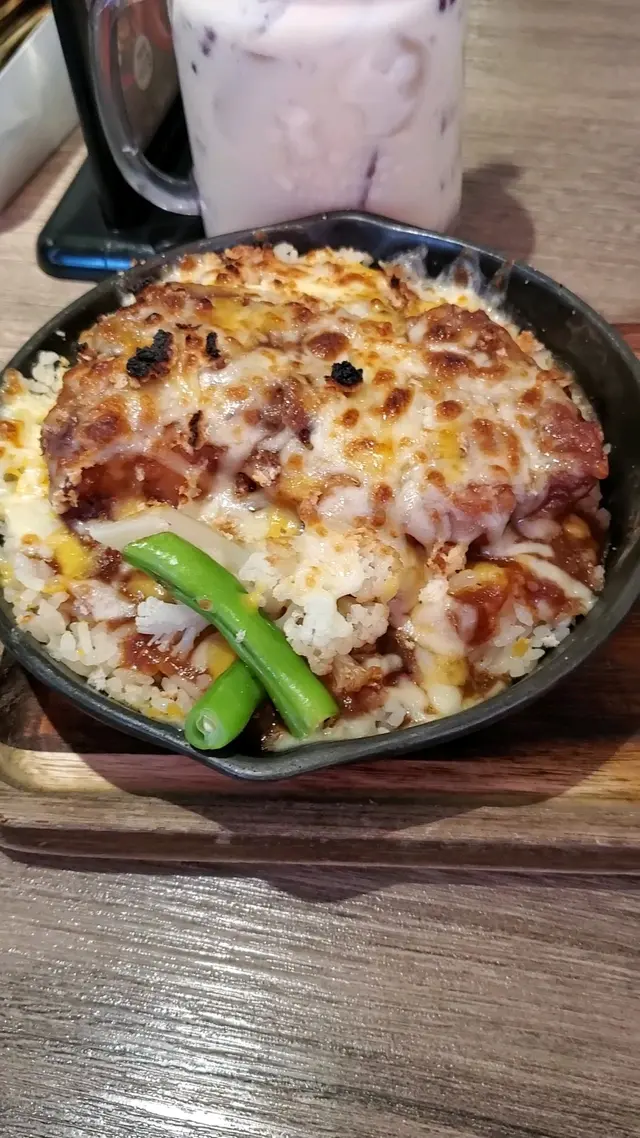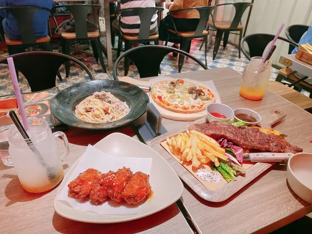 今日又黎搵新野食,搵到喱間有比較多分店嘅餐廳 - 韓樂一入去環境環境昏暗,比較有格調。我們每人一個餐,分别叫了......1. 韓風豐盛雜扒餐蒜蓉汁配熱朱古力,豬扒外脆內嫩,薯條金黃鬆脆。2.半容鮮茄肉醬扁意粉配凍朱古力,扁意粉Q彈有咬勁,茄肉醬酸甜鮮香不油膩。3. 芝麻八爪魚芝士燴飯配熱柚子新鮮冷壓檸檬茶章魚彈牙鮮嫩不柴,芝士融化濃郁4.辣八爪魚炒野菜年糕配凍特濃即磨咖啡年糕軟糯吸汁,彈牙不黏,章魚腳Q彈鮮嫩,野菜清脆,咖啡冰涼順滑因為每份餐都比較大份,下次4人可點三個餐就足够了,今次食到好滿足😋😋😋!Yummy 😋…查看更多
