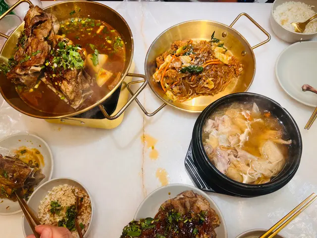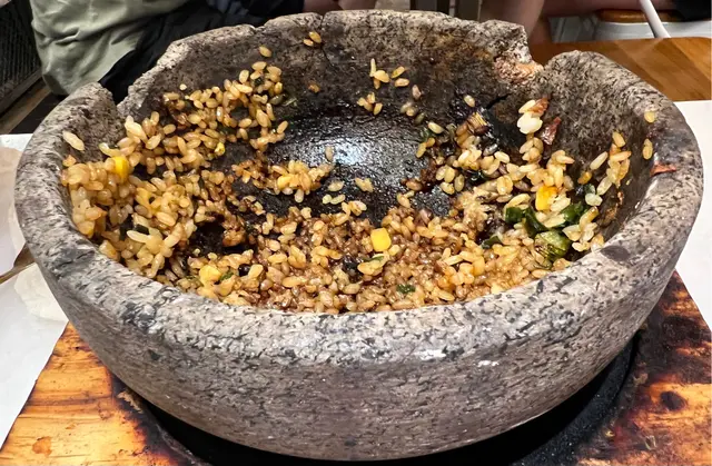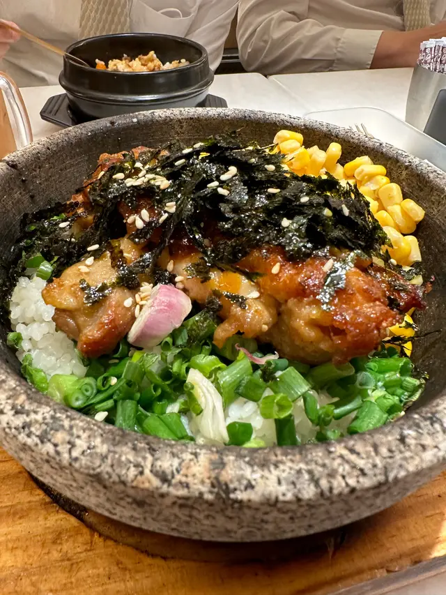 叫左兩款午餐。雞扒粟米石頭鍋珍珠飯熱辣辣,雞扒相當大塊,頭鍋珍珠飯材料都好豐富,除咗有大量嘅粟米,仲有好多紫菜,芽菜泡菜等等。另外可以按個人喜好加上甜醬油或者辣醬油。韓式牛肉炒粉絲 材料非常豐富,牛肉大大片,仲有好多蔬菜同埋冬菇,炒得幾香。…查看更多