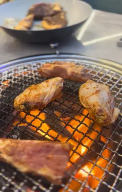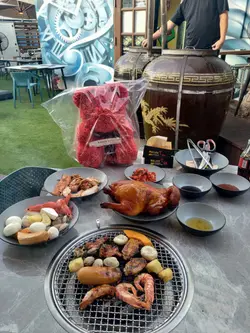 位於元朗流浮山🏞️嘅韓泰太,係近期極受歡迎嘅🇰🇷韓燒放題餐廳。餐廳以夢幻粉藍色壁畫🤩外牆做招牌,建築風格充滿希臘🇬🇷風情,令人一見難忘😍!室內裝修採用歐陸渡假風🏖️,典雅氣派,而戶外就係露營風座位🏕️,四周被大草地包圍,環境寬敞舒適。坐喺戶外位就可以用炭爐燒烤,炭火香味更濃🔥;而室內位置就用電爐,同樣美味可口✨。韓燒放題選擇豐富🥩呢到嘅韓燒放題😋選擇多元化,多款牛仔骨、牛西冷、牛肋肉等上等牛肉🐂,仲裁五花腩、豬頸肉等優質豬肉🐷。雞肉系列包括雞中翼同雞脾肉🍗,每款肉類都提供韓式、泰式同BBQ三種口味💫,滿足不同口味需求。配菜醬料層次豐富🧂餐廳配上韓式辣醬🌶️同柚子醬,味道酸甜開胃🤤。新鮮生菜包肉食🥬,再配埋泡菜,口感層次豐富,解膩效果一流👍。重點推介:蜆同生蠔🦪任食蜆烤到啱啱好😍,鮮甜肥美又多汁,係必試嘅海鮮選擇👏!炭燒肥美生蠔🦪更係人氣之選,星期一至四每人免費2隻🎁,星期五至日每人免費1隻,想食多啲嘅話追加特惠價每隻5元💰,生蠔每日新鮮到貨保證質素。自助飲品區任飲🥤自助區飲品款式勁多☕,連啤酒都有幾款選擇🍺,配燒肉一流。除咗自助區嘅包裝🧃罐裝飲品,仲有即叫即沖嘅多款水吧出品🥤,滿足不同需求。必食流浮山窯雞🔥加送嘅原隻流浮山窯雞🍗係餐廳嘅招牌菜,雞隻放入瓦缸🏺炭烤燒製,工序認真專業👨🍳。出爐嘅窯雞皮薄香脆💫,肉質嫩滑多汁🤤,真係超正✨。甜品雪糕任食🍦雪糕櫃有勁多不同款式🍨嘅雪糕雪條,包括高質嘅Dreyer's甜筒,仲有🥰經典嘅Monaka,最啱香港人口味😋!提早訂座仲額外送窯燒燒肉🎁(只限堂食),而且餐廳提供免費泊車🅿️。…查看更多