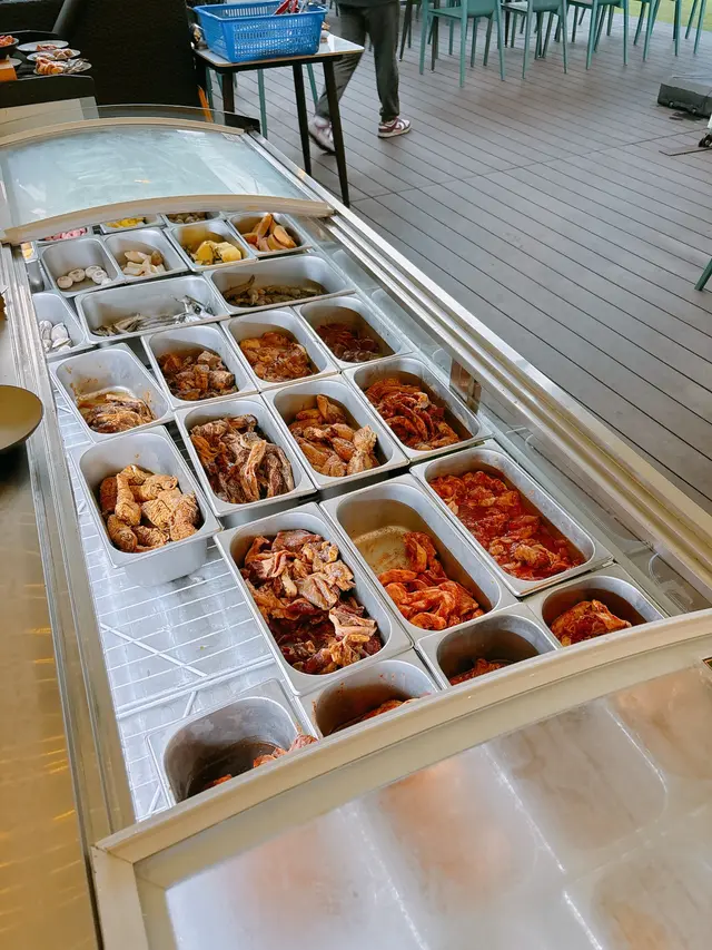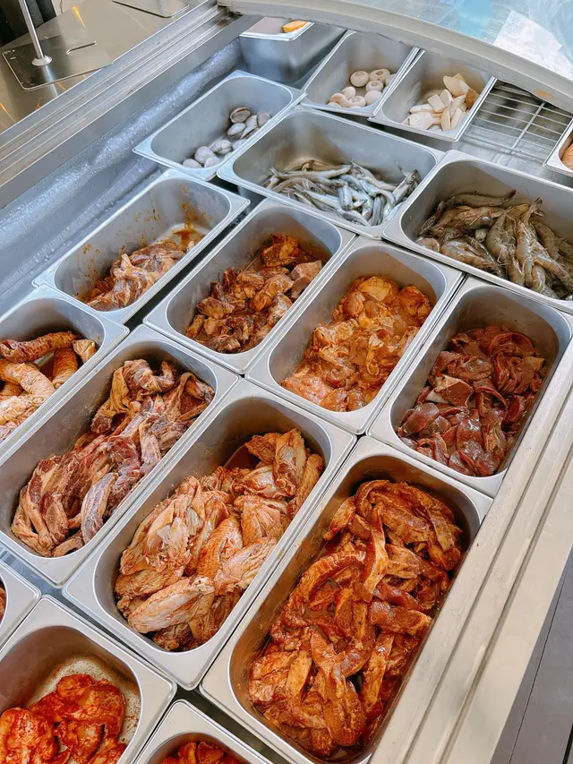 韓泰太炭燒窯雞自助韓式BBQ ,非常適合一家大細和朋友食物種類繁多 燒牛肋肉肉質鮮嫩,肥瘦相間,油脂融化牛味濃郁有肉香,入口燒烤的焦香,咬下去多汁美味牛仔骨肉質緊實,嚼勁十足,肥瘦均勻有淡淡的煙燻香西冷牛扒肉質厚實、質地滑嫩,鮮味濃郁,外層焦香,內部柔嫩,牛肉味濃烈豬髀骨肉質鮮嫩,富有膠質,口感滑順五花腩肥而不膩,油脂在烤製過程中變得酥脆,香味四溢美國肉眼脂肪分布均勻,肉質鮮美,入口有肉的嚼勁又不失嫩滑 炭燒有殼生蠔𧐢味濃郁,經炭燒後,生蠔的鮮甜甘香,肉質爽脆,十分新鮮丸類外皮金黃酥脆,內部柔軟多汁,不論是魚丸還是肉丸,味道鮮美腸仔香腸燒完煙燻味香外皮酥脆,內部多汁,咬下去汁液流出出名炭燒窯雞用上特製的窯來燒,原隻燒雞外酥內嫩雞皮香脆炸裂,酥脆的外皮包裹著多汁的雞肉,咬下去時,脆嫩鮮香,多汁鮮美雞肉經過炭燒後,肉質保持鮮嫩多汁,咬下去汁液澎湃飲品任飲,而且種類非常多,還有雪條雪糕飲食…查看更多