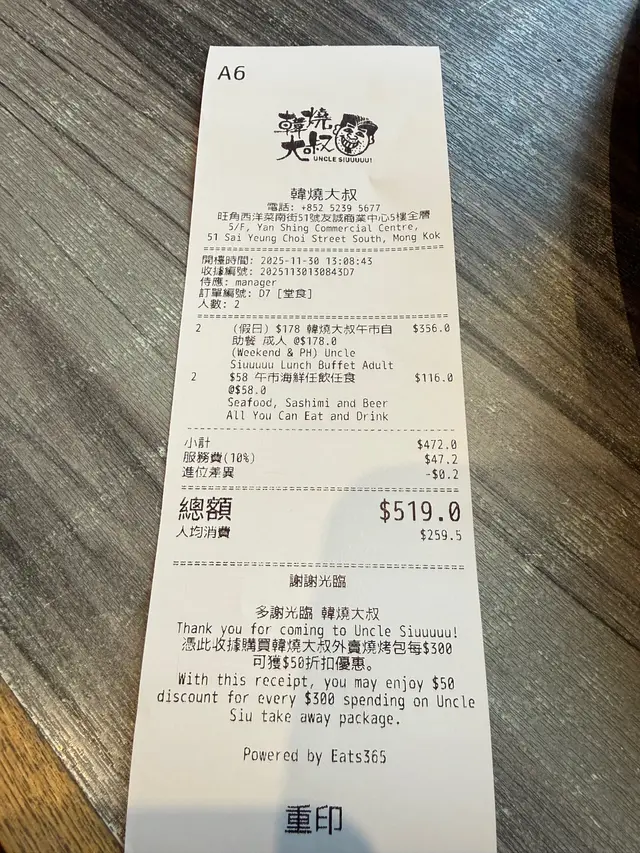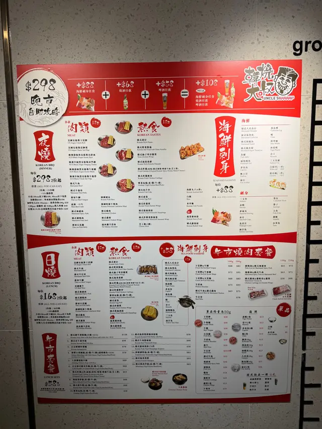 韓燒大叔 (旺角) 網上訂座享$40優惠兼賺Rice Dollars 網址: https://s.openrice.com/QrbS0EIWC00 地址: 香港旺角西洋菜南街51號友誠商業中心5樓 電話: +852 52395677
