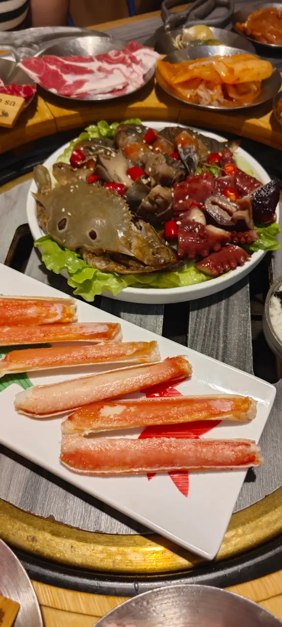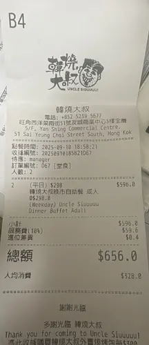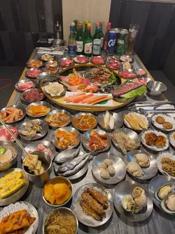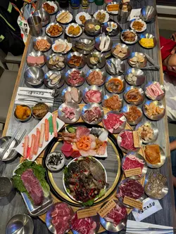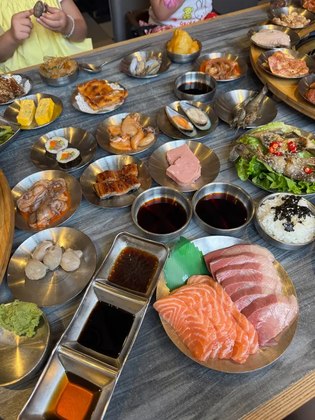 咩叫大排筵席?🤔💭 嚟到「韓國大叔」就明啦!👨🍳🔥 枱上面放滿過百款食物🍖🍣🍤,真係睇到都開心到嘩嘩聲啊~😍✨ 晚市120分鐘任燒任食⏰🔥,仲要係瘋狂上菜模式🎉,細細碟,多多款擺到成枱都係📸,相機先食絕對冇難度🤳💖講真,啲肉真係高質到爆!🤩🇺🇸美國安格斯下肩胛肉、肩胛翼、加上🇦🇺澳洲黑安格斯封門柳、牛板腱、牛頸脊等多款靚牛肉🐂🔥,燒完外脆內軟,juicy到不得了~😋💦仲有燒魚鮫🐟同燒豬皮🐷,係必食之選!👍 我兩個小朋友仲瘋狂愛上咗韓式魚蛋🍢,話好彈牙好過瘾🤣🎉 細佬仲未夠90cm係免費📏,但佢食得仲多過我哋😂🍽️今次仲撞正細佬就快生日🎂🥳,原來呢度生日有蛋糕送🎁,多過8人仲可以一人免費(星期日至四)👨👩👧👦,真係開心到癲咗!🎊💃 仲有呀,60歲以上長者都有85折👵👴,下次帶埋公公婆婆嚟食~❤️🌈晚市訂枱優惠真係抵到爛!💰🤯 每四人送原塊安格斯西冷牛扒🐄,我哋揀咗加$88任食海鮮刺身🐟🦐,仲可以用$1追加韓國直送 1+慶州千年韓牛西冷一塊 🐂🇰🇷或醬油蟹拼盤🦀🔥 !海鮮方面有元貝🐚、大蝦🦐、鰻魚🍱,刺身厚切又新鮮💎,油甘魚腩🐟同牡丹蝦🦐真心正~🤤👌 更可以升級食法國或韓國生蠔🦪,記得要預早一日訂啊,肥美到不得了😍💦飲品方面連酒精都有好多選擇🍺🍷,男女都會搵到心水💁♀️💁♂️。仲有韓式紫菜卷🍙、冷麵🍜、炸物🍟同雞翼🍗,小朋友實鍾意!👦👧 最後仲有樣嘢一定要提:21:00後入座每位減$40🌙💰,夜鬼家長出動啦!🌃👨👩👧👦開心就係咁簡單💖,一家人食餐好👨👩👧👦,已經係最好嘅時光🌈💫 …查看更多