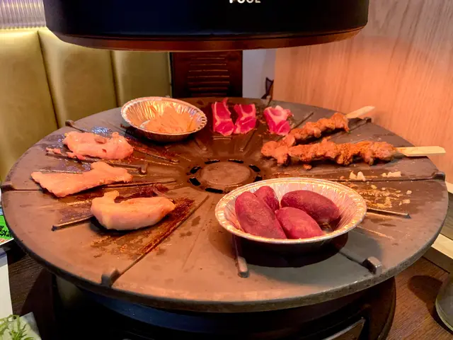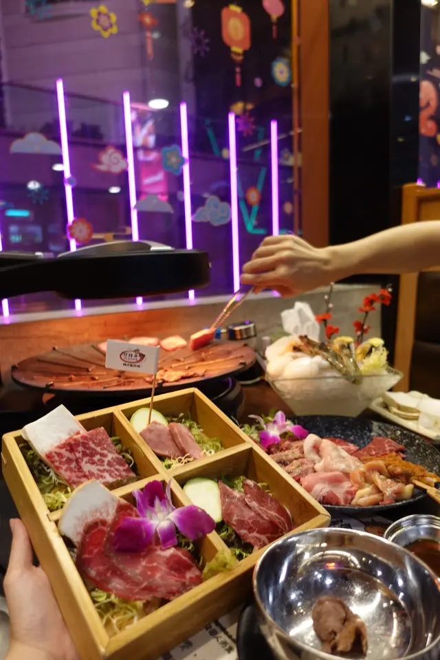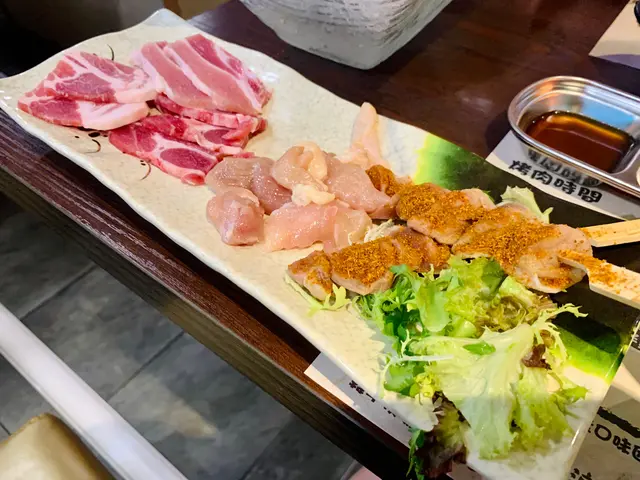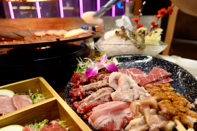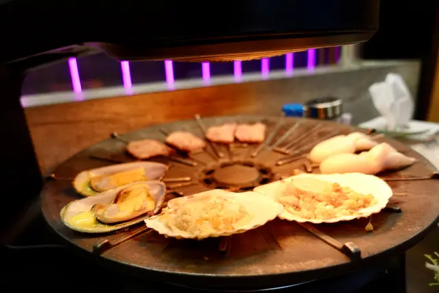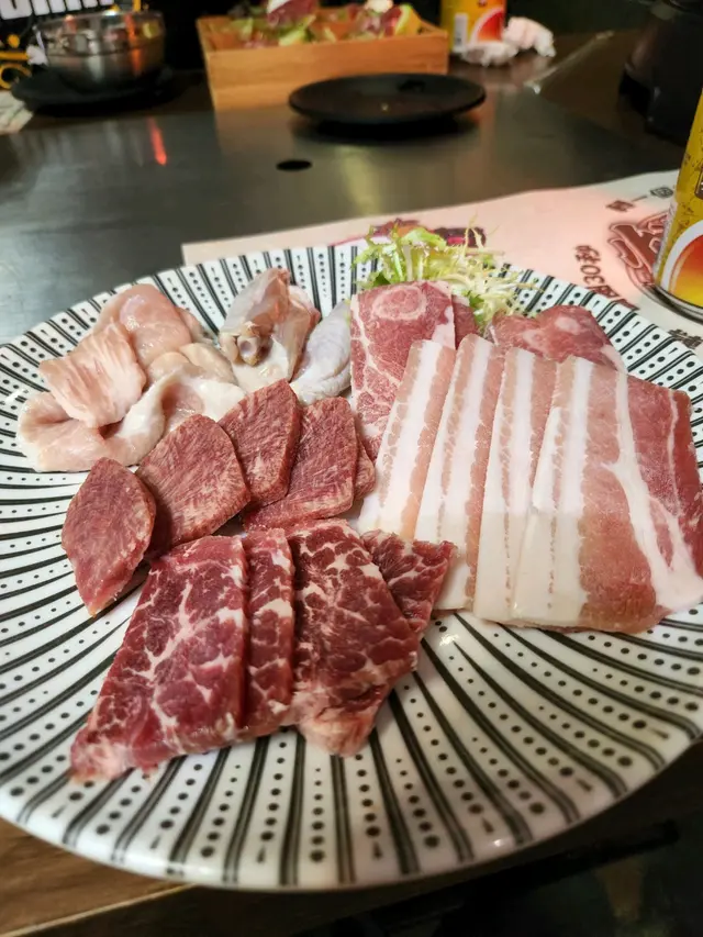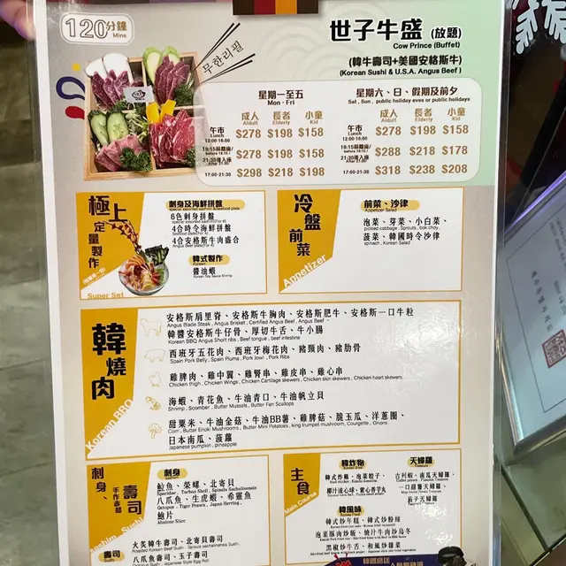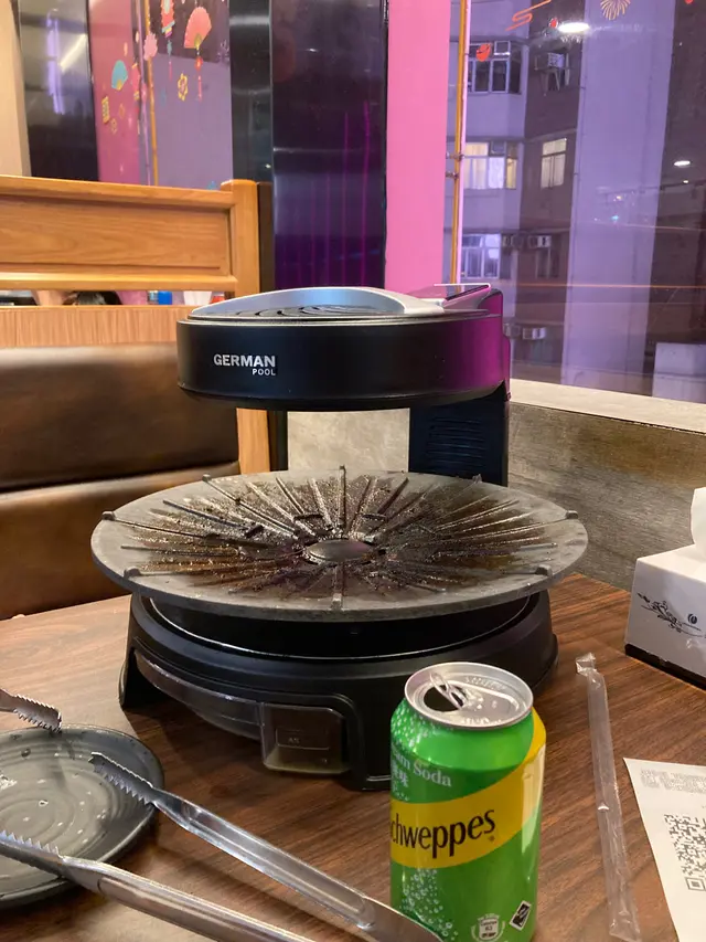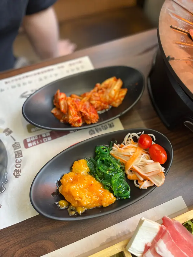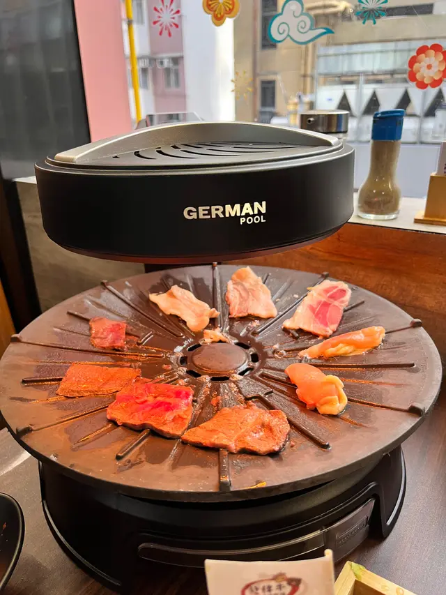 以住體驗過嵌入式日式無煙燒肉爐,煙霧立即從鐵板兩旁抽氣道排走,今次第1次使用家用式光波無煙烤爐燒肉,確實要記錄下一用後感及食物質素。餐廳為3樓全層,門面以灰石及木為主,未能感受到韓式風情,加上招牌仍被蓋上,猶豫了一會才與朋友進入確認。進內後率先經過自助前菜冷盤區,有自由配搭沙律、日式及韓式前菜約8款,沙律菜乾爽完整,各前菜醃製入味,辣與酸度適中,有開胃作用,還有3款熱小食供應,但由於太飽最後未有機會品嚐。內裡裝潢簡單,沒有額外裝飾式佈置,內裡只設卡位,大約可容納45人,環境整潔寧靜,尚算舒適。餐牌也一目了然,2小時放題收費因應平日/假日有所不同,而供應之食物內容不變,同樣包括定量製作、冷盤前菜、近30款燒肉蔬果、刺身壽司及主食小吃。點餐後大約15分鐘內食物陸續呈上,上菜速度甚快。定量拼盤包括按人頭安排四合安格斯牛肉盛合、四合時令海鮮拼盤、六色刺身拼盤及醬油蝦。四格木盒盛載著安格斯肩里脊、安格斯牛胸肉、安格斯肥牛及厚切牛舌,3款安格斯牛肉與脂肪分布平均,容易咬開,但略嫌薄身,未能體會到肉感與牛汁味,而且爐板轉動,如牛肉轉離自己方向便難以在光波熱下反動,令焦度難控制,但光波下確實令肉類較快煮熟。冰鎖牛油青口、牛油帆立貝、魷魚及大蝦,光波烤爐反而甚為適合甲殼海鮮!光波能燙熱表面,有殼海鮮快熟同時容易控制熟度及保留汁水,殼類海鮮只有淡然有鹽牛油味,對調味幫助不大。包括三文魚腩、希靈魚、鮑片、生虎蝦、八爪魚及榮螺。刺身尚算新鮮而係且解凍足夠,厚切三文魚腩甚為肥美,可惜定量不可添加,其他款式可任添,但較冷門且細片。蝦的口感屬爽口,但味道超級鹹,應該要注意醃醃分量及時間。燒物有豬、牛、雞肉、海鮮及蔬果接近30款,款式太多未能逐一品嚐,只好記錄品嚐過而好食的:安格斯朗肩里脊:脂肪分布平均帶牛肉嚼勁.安格斯肥牛:薄片快熟,少脂肪,重牛肉味.安格斯一口牛粒:以往品嚐過之牛柳粒較煙韌,而這次的一口牛粒燒後軟腍更帶少許肉汁.韓醬安格斯牛仔骨:淡然的韓醬醃製鹹味,骨中帶少許肉汁.雞髀肉:嫩滑彈牙有肉汁,適合沾增添味道.海蝦:大隻海蝦爽脆帶鮮蝦味.脆玉瓜:焦焦表面瓜肉軟腍.洋蔥圈:同樣可燒至焦焦的洋蔥圈與牛肉一同品嚐不可提味還可解膩此時已到晚餐尾升,太飽未能試到主食,唯有點選較輕形的天婦羅及韓式炸物小食試試,兩者勻即叫即炸滾燙,油質好炸色金黃,如呈上前先吸油可減低油份溢出的情況。食燒肉汽水不能少,大約有6款供選擇更包括啤酒,可惜沒有無糖飲品。共有四款韓國雪條供應,必試黑糖珍珠奶茶味!光波烤爐普遍也可加快燒物熟度,烤海鮮有較大的優勢,光波撇除了甲殼難傳熱的問題,還能鎖到汁水,但轉動功能則難以翻動食物,由其跨越光波爐的高溫,稍微阻礙肉類表面燒焦表現,建議加點油份防黏爐板,油份隨即因爐板傾斜而減少油分積聚,燒肉相對油份較少。食物方面肉類款式多,海鮮質素尚可,查看更多