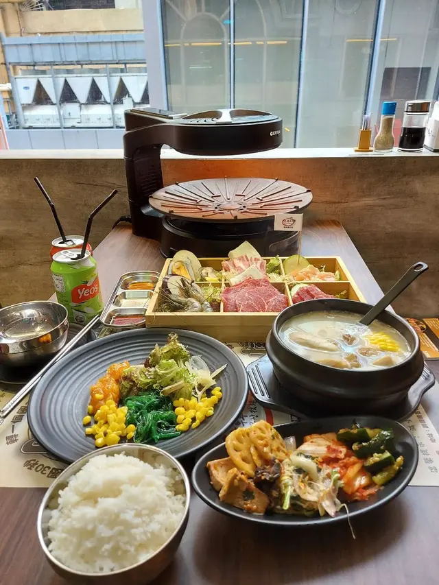 今日去開Cwb 買嘢,朋友話順便係到食個lunch ,佢話永光中心好多野食,就簡中左依間,地方幾大座位多,坐得都幾舒服👍🏻,午餐有定食又有放題,但好快食夜晚就忍住冇食放題😂。✨另設加一-以下包飲品、沙津、前菜及小食任食~💕 1++韓牛韓燒定量午市餐(二人份) $238(1++韓牛牛肋骨肉、韓醬1++韓牛肩胛、西班牙黑豚五花腩、韓式雞腿肉、虎蝦拼半殼青口)👅好味指數:6.9/10甚少見用光波爐燒肉,少油啲又冇油煙,感覺上都冇咁熱氣🤣,虎蝦大隻鮮味彈牙🍤,韓牛肩胛比較薄,油花豐富牛味重,而雞腿肉都爽口彈牙。-💕 宮廷人蔘烏雞湯跟飯(2人份) $148👅好味指數:6.9/10好多藥材,勁足料!烏雞入哂味,人蔘味勁重🤣,接受到好重藥材味就可以叫。-環境:7/10服務:7.5/10好味指數:6.9/10回頭率:6.9/10查看更多