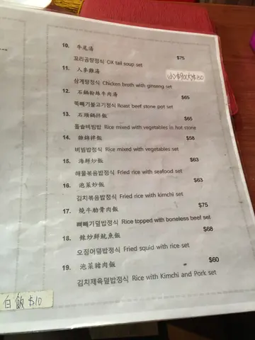 係北角行行下見肚餓,見到係食韓國野就入左去。7點入到去完全無人,嗌左石頭雜綿飯、水餃年糕湯同紫菜包飯。水餃年糕湯完全係一個伏黎,睇相好似唔錯,黎到哇左一聲。成碗野得一隻水餃,又有好多牛肉,重點係佢餐牌無講到有牛,就唔好講系水餃年糕湯拉,叫牛肉年糕湯算拉,78蚊得一隻水餃一啲都唔合理。個雜綿飯都叫ok,但系成間鋪頭得我地一枱客,個侍應都唔幫我地撈下個飯而走左去禁電話。紫菜包飯好普通,無特別。三樣野加埋一要$200,一啲都唔抵食,淨系得個飽字,無下次。…查看更多