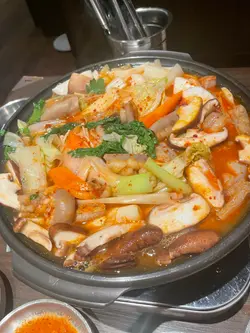這次到訪韓鍋酒舍,餐廳氣氛地道熱鬧,是適合三五知己聚餐、邊吃邊傾的韓式火鍋專門店。以下是我的用餐體驗:招牌牛腸鍋:鍋底湯頭香濃,牛腸彈牙無異味,配料豐富,蘸醬後風味更佳。芝士及蔬菜令湯底更有層次,每啖都吃得到牛脂甘香。炸餃子:即炸上枱,外皮金黃酥脆,內餡飽滿多汁,調味剛好,單食或配鍋都很不錯。牛腩湯:湯底濃郁不油膩,牛腩軟腍入味,帶點胡椒辛香,適合打邊爐前暖胃。餐廳飲品選擇多元,包括韓國燒酒和啤酒,服務貼心又親切。環境寬敞,晚市氣氛熱鬧。整體而言,是熱愛韓式火鍋或下班想舒壓大吃的好地方…查看更多