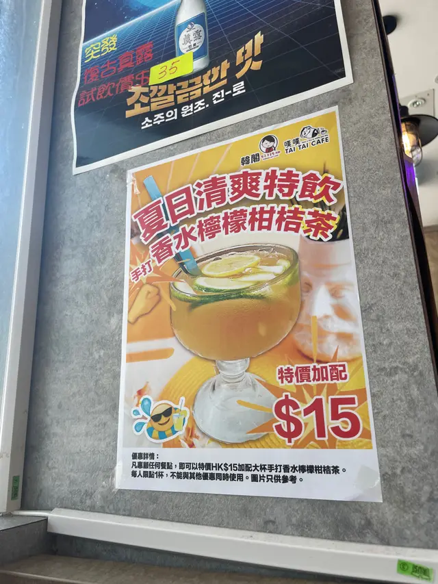 晚上二人同去,只叫了芝士牛肉鍋及炸雞,份量已經很飽。店內有社交平台 promote 就可免費飲品,飲品是有助消化食品,十分良好。店內環境不是很大,但不會感到很擠迫,員工態度良好。泡菜更可以免費添食。整體各樣也不錯,只是炸雞可以在切細一些。