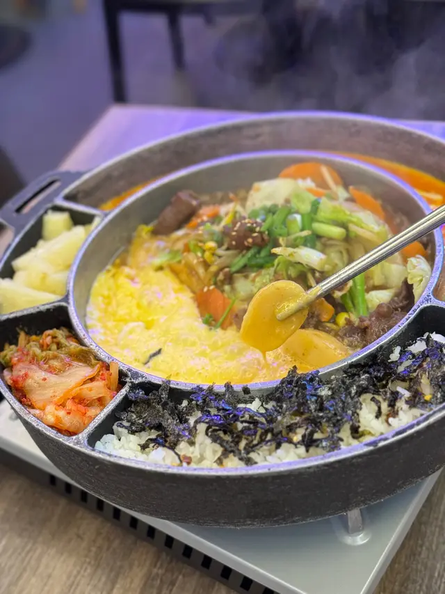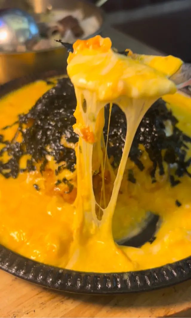 好多韓式餐廳打住拉絲芝士嘅旗號,轉鬆將一碟泡菜炒飯賣到百幾二百蚊......😐 而呢到只係需要$100就有澎湃芝士,真係好良心,芝士控時不時都可以過嚟滿足芝士慾喇🥹!➪ 一上枱見到佢好似溶岩咁bulu bulu,已經覺得好驚艷好期待😍➪ 撈落啲芝士仲要多到就嚟瀉出盤邊,芝士狂魔表示好!嗨!呦!➪ 平時可能要加錢先有肉食,但呢到就自帶五花肉🫰🏻➪ 食到尾仲有香軟芝士燶底,一啖接一啖停唔到口,啪晒成個冇難度😝查看更多