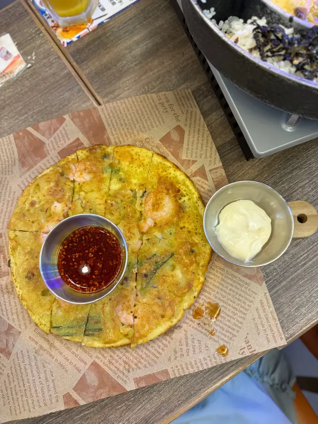 二訪這間性價比極高韓式餐廳😆就在荃灣廣場隔離非常方便上次吃過韓閣歡樂盤好難忘所以今次都要再食, 但今次揀牛肉韓閣歡樂盤-韓式牛肉是必食之選👍🏻鍋內有齊澎湃的三重芝士、味飯、牛油粟米爐邊蛋、韓式前菜牛肉醃得很入味,沾上拉絲芝士食超好食😋海鮮煎餅煎餅頗厚,咬落煙韌,入面有蝦、魷魚和大蔥,配上沙律醬或豉油更濃味👍🏻心多多蛋卷蛋煮得剛好, 不會太過生或太過熟好軟熟, 食完超飽肚!手打香水檸檬柑桔茶是新出飲品, 初頭還怕會好苦澀但原來好好飲, 不會太酸太甜喝了有清新解喝感覺青檸柚子蜜好大杯, 個人認為偏甜, 可加多點冰中和這裡只是吃了不過$400 而且沒有加一很化算✌🏻查看更多