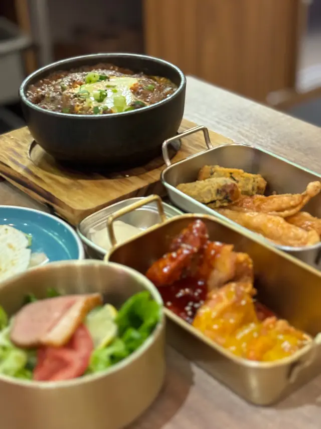 喺社交平台賣廣告見到,標題寫住正宗地道韓式料理,見價錢幾吸引,所以去咗食大伏!大伏!蜜糖炸雞🍗食到滿滿嘅化學蜜糖味,個醬食落好奇怪,偏甜肉鬆玉子燒超乾身,而且個玉子係一D蛋香味都冇,唔知食左咩豬肉炒粉絲豬肉少得可憐,好油,食到底嘅時候會見到一碗油,不過呢個係全日裏面最好食嘅一樣嘢年糕串個甜辣醬真係好奇怪,唔係正宗嘅味道,而且佢個腸仔係芝士腸嗰啲朋友甜品係一個維記雪米糍,code落單嗰陣隔離寫住備菜時間為20分鐘,一開頭幾期待,最後見到個侍應放咗兩粒雪米糍喺個枱度😹😹⋯⋯總結:望落去好多嘢食揀,真係食嘅時候大部份嘢食都偏伏,唔好有預期,佢最多係茶餐廳水準未去到正定韓式地道美食,但係公道講句係抵食嘅,都食得好飽…查看更多