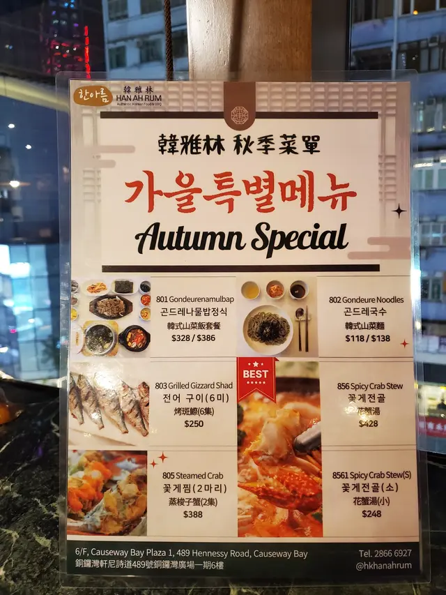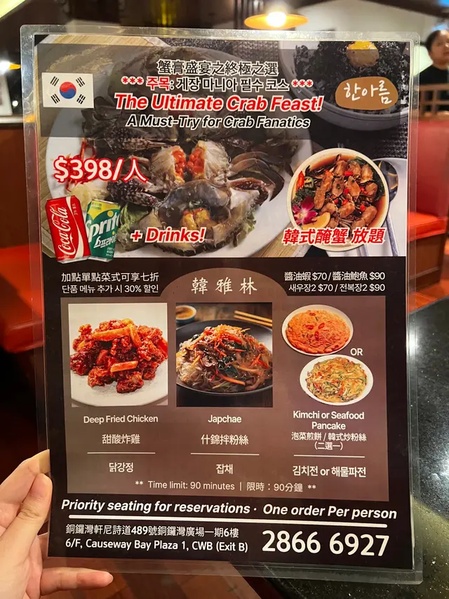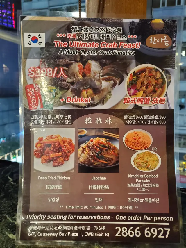韓雅林 (銅鑼灣) 網上訂座享低至7折優惠兼賺Rice Dollars 網址: https://s.openrice.com/QrbS0mQO700 地址: 香港銅鑼灣軒尼詩道489號銅鑼灣廣場一期6樓 電話: +852 28666927