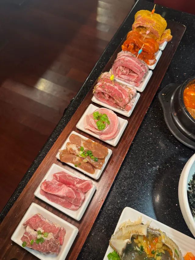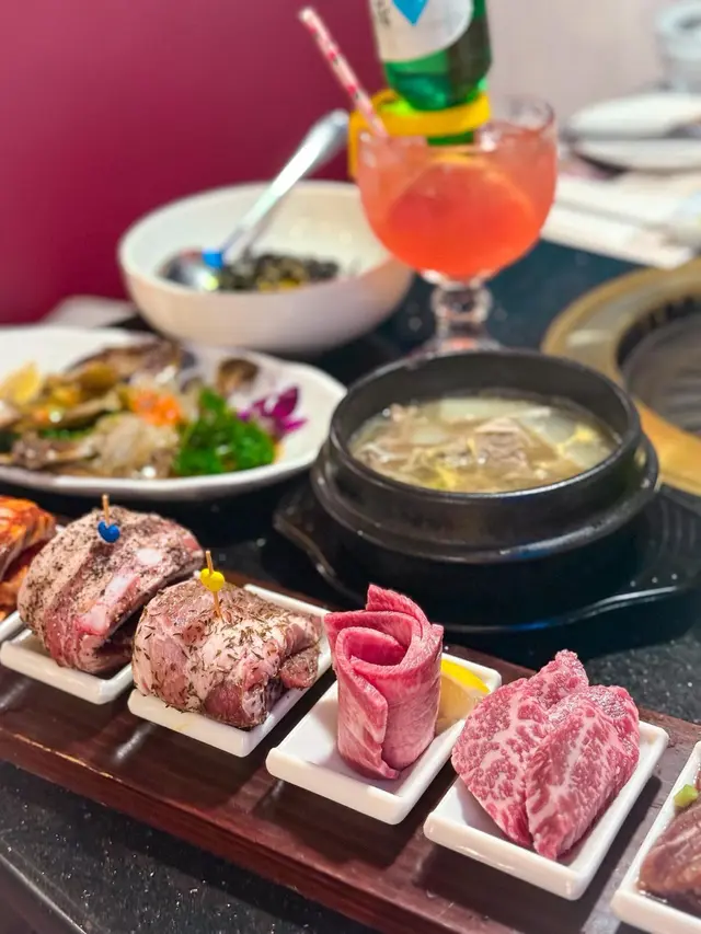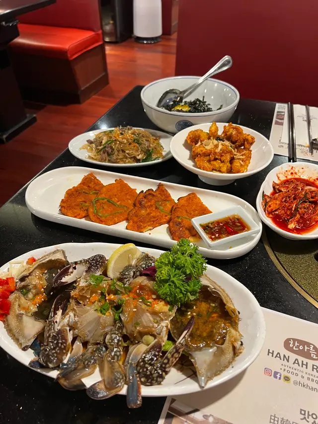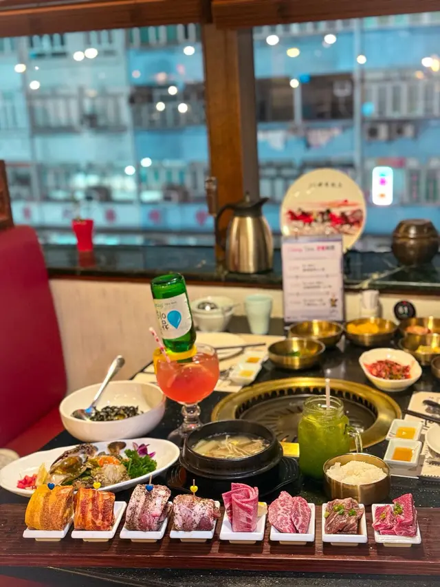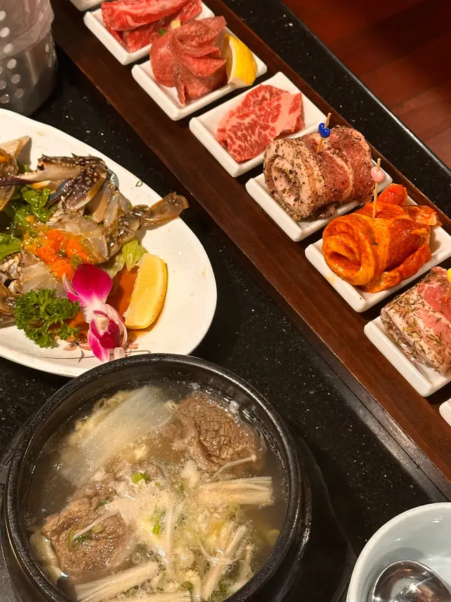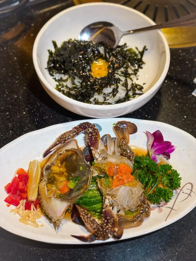 今次嚟呢間銅鑼灣傳統韓式老字號餐廳,裝備以舊時韓國紅磚牆木擺設為主調,牆架上放滿人蔘酒罐、傳統木雕同韓文招牌,卡位闊落得嚟仲有私隱度高嘅VIP房。可能是韓國人主理關係,大部份食客都係韓國人,氣氛十足首爾地道飯堂!餐廳菜式都好多元化,烤肉、醬油蟹、海鮮、炸雞、豬手、傳統小炒、韓式小菜、打邊爐、燉湯、石鍋飯麵等應有盡有。點餐後率先奉上多款前菜,包括泡菜、薯仔、芽菜、菠菜,竟然連滷水鵪鶉蛋都有,前菜仲可以任添。醬油蟹1隻及牛油飯 $250呢個真係必食之選,每日新鮮製作,醬油蟹超爆膏,半透明的蟹肉鮮甜,搭配牛油飯、生蛋黃和海苔拌勻後,好食到不得了。蟹腳肉質彈牙,醬油調味適中,咸咸甜甜,好想Encore叫多隻嚟食!燒肉拼盤E02.四色五花肉+牛肉+海鮮 $698肉類都是由韓國進口的牛/豬肉,包含四色調味五花肉(蒜蓉、香草、咖哩、辣椒醬)、牛肉(雪花牛肉、調味烤裏脊)和海鮮(鮑魚、大蝦)。五花肉肥瘦適中,醃得相當入味;牛肉油花均勻,軟嫩帶有咬勁;海鮮新鮮,鮑魚彈牙,蝦肉紮實。一個拼盤份量已足夠情侶或2-3人食用。湯品及飲品大醬湯($158)味道傳統,豆腐嫩滑,湯料豐富,微辣而不過咸。Beer Rita飲品($88/杯)造型獨特,西柚口味清爽,藍檸口味酸甜與微苦平衡,適合搭配燒烤。…查看更多
