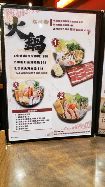 和朋友相聚吃晚餐, 選擇在她住處附近商場內的一間食店. 食物選擇頗多, 有火鍋, 定食, 亦有多款小吃, 而且價格相宜掃碼點菜後, 店員端上了一份螺肉前菜田園野菜滑雞鍋 $78 可選龍蝦蕃茄湯底 +$5, 追加其他配料, 我們追加了一份蔬菜籃 $32, 另有珍珠御飯或烏冬可選其一龍蝦蕃茄湯底味道非常香濃, 鍋內除了鮮滑雞外, 有娃娃菜及小棠菜, 鳴門卷, 金菇和其他雜菌, 滑雞肉質非常嫩滑鍋燒豚腩烏冬配唐揚炸雞兩件及溏心蛋 $80除了豚肉外, 還有鮮蝦天婦羅, 冬菇, 鳴門卷及小棠菜, 另有溏心蛋可選全熟或半熟或走蛋, 首先賣上已很吸引, 味道亦相當好火炙芝士炸豆腐 $35這個是我一看到圖片就很想試, 所以期望很高, 上菜是完全跟圖片的一樣吸引, 整件豆腐外層被火炙芝士裹著, 面層灑上了蟹籽, 葱粒及蘿蔔茸, 半溶狀態的芝士配上嫩滑的豆腐, 再加上帶點酸味的醬汁, 完全滿足了口感及味覺螺肉軍艦2件 $18螺肉爽口嫩滑位於屋邨商場的這間小店, 食物質素比想像中好, 而且非常抵吃, 店員又友善, 性價比相當高👍