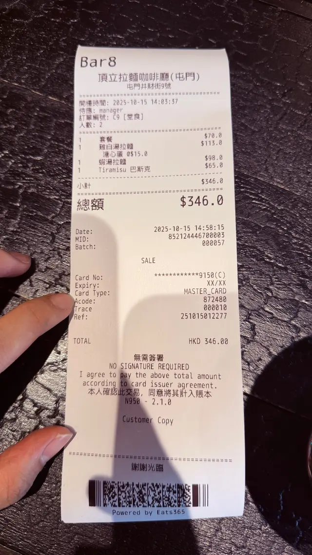 今次試左佢個蝦湯拉麵配cold blew 再加日式布丁嘅套餐價錢就$98+70=$168蝦湯夠晒濃味又夠香,一啖咖啡一啖湯,真係夠晒特別。拉麵質感亦都很不錯👍🏻冷萃咖啡都好飲,以一間日式拉麵店入面飲到呢個質素嘅啡真係好難得。