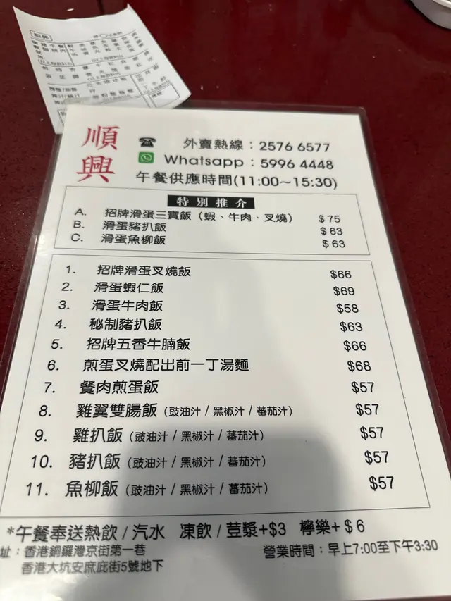 今天去大坑人氣茶餐廳順興,午膳時間大約等了15分鐘,算是可以接受啦!點了他們的三寶飯,裡面有蝦仁、牛肉、叉燒和炒蛋,真的好豐富。每一口都能感受到不同的口感,蝦仁鮮甜,牛肉嫩滑,叉燒帶點蜜汁的香味,炒蛋更是滑溜溜,搭配白飯,簡直是絕配。還點了個車仔麵,裡面有魷魚、雞翼和牛肉,味道也不錯!腸粉底吸收了湯底的精華,讓每一口都充滿風味。魷魚彈牙,雞翼的皮脆肉嫩,牛肉軟滑,非常好吃。整體來說,這餐讓我覺得物超所值,順興的茶餐廳果然名不虛傳!下次想試吓菠蘿包。…查看更多