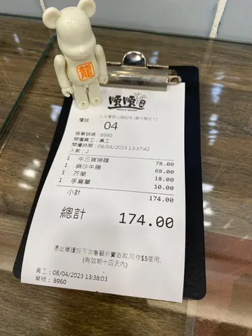 因为收到了广告传单所以才去吃的,实际和预期差的很远。店面比较小,而且位置稍微有点偏,需要绕一圈才能找到。点了三宝面,但是老板娘说没有牛筋就换了牛肚牛腩面。说是牛骨汤底,其实和酱油汤没什么区别,喝不出牛骨的鲜味,汤底也不够咸。牛肚炖了九分烂,但是还是有点塞牙,牛腩倒是还可以,有牛肉味但是咸度也是差了一点。面条默认是竹升面,但是没有新鲜面条的碱水味,感觉一般。总体评价是顺路尝鲜可以,特地过去就没必要了。