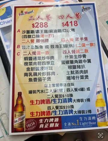 有時放左工 同老公兩個撐枱腳我地都會去何文田愛民邨既領鮮廚房食小菜食個2人餐 有雞 有魚/蝦 再加1個小菜份量夠之餘亦都好夠鑊氣大排檔風味 但有冷氣 坐得舒適今次都係叫左2人餐 揀左霸王雞 豉汁蒸倉魚 蝦醬通菜炒牛肉 最後因為無哂通菜 變左芥蘭炒牛肉 但都好好味個霸王雞有半隻 夠滑唔鞋口 豉汁蒸魚都大條 幾抵食 唔腥好新鮮 最後個芥蘭炒牛肉 好有獲氣 好惹味 三個餸 兩碗白飯再加兩個汽水 好夠食$288 有雞有魚有小菜 價錢合理 佢地仲有雞煲烤魚 同埋我見好多人食海鮮 下次多人一齊食可以再試個樣好靚 應該都好正